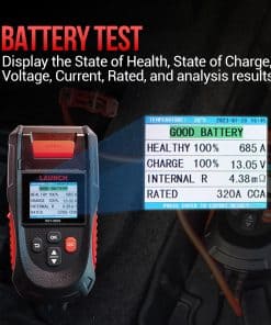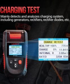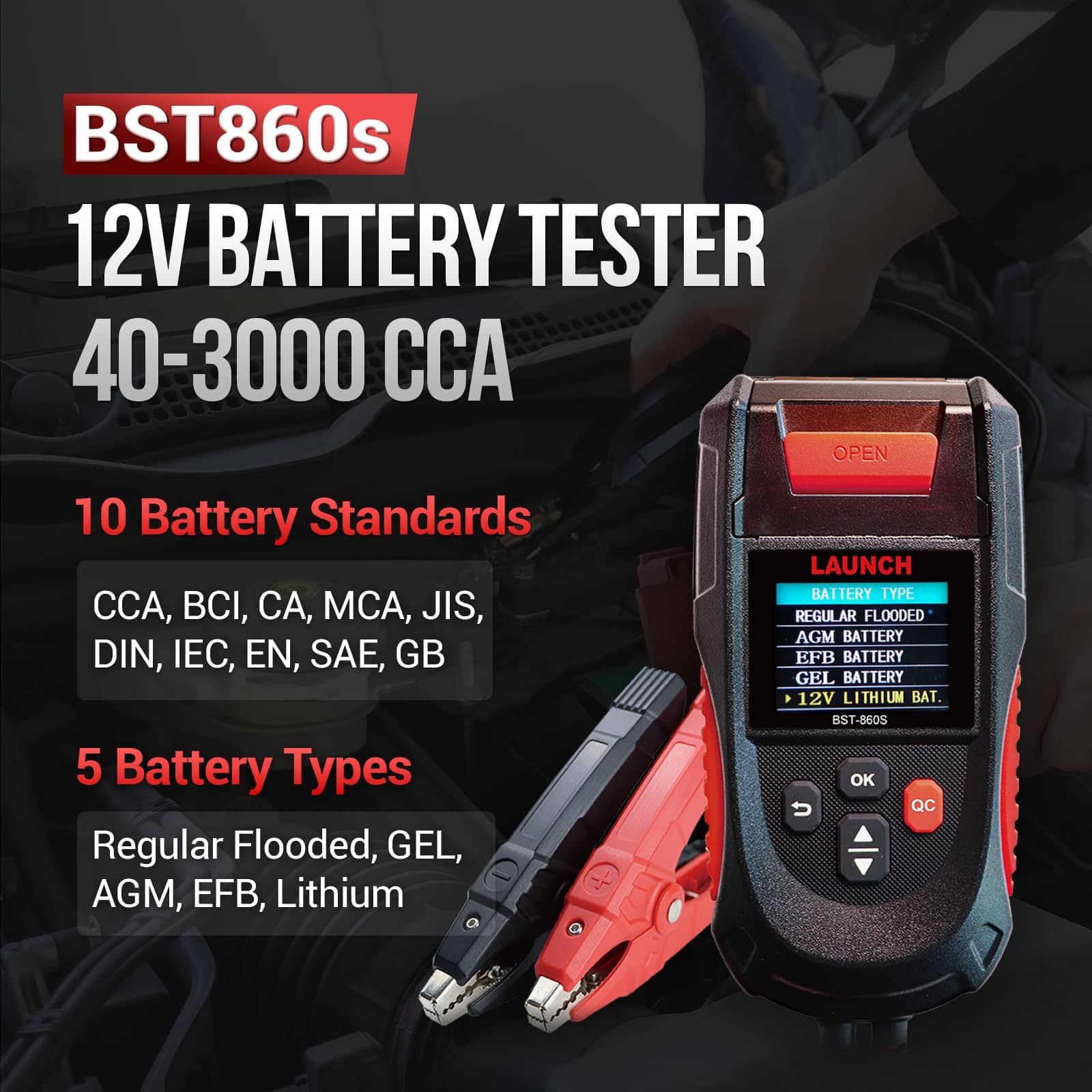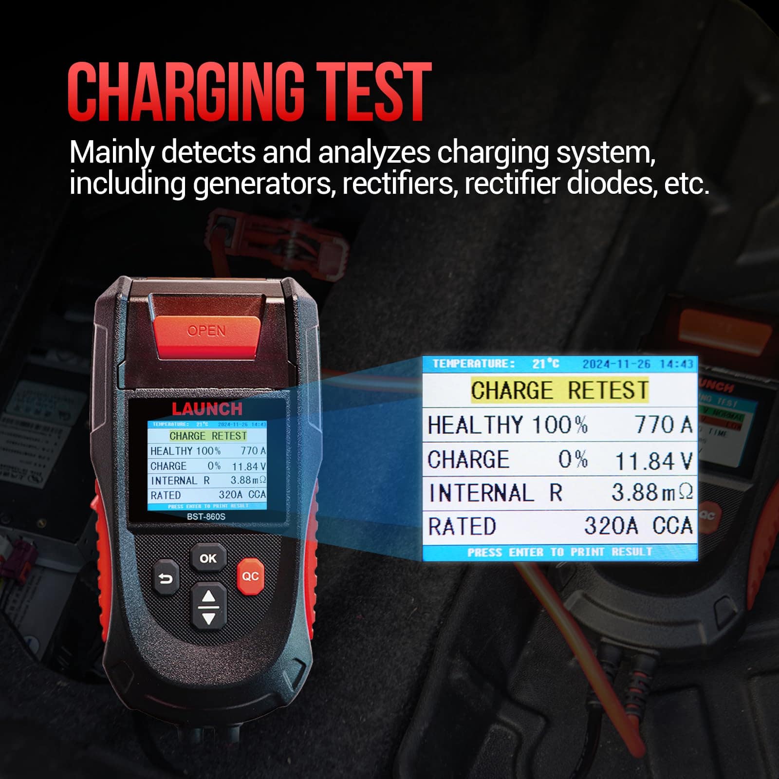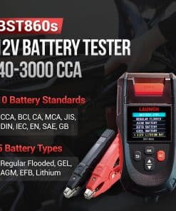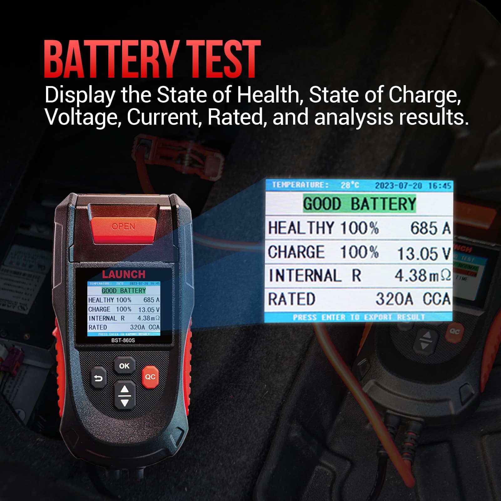 1. El probador de batería LAUNCH BST-860S soporta estándares de medición internacionales como CCA, BCI, CA, MCA, JlS, DIN, IEC, EN, SAE, GB. 2. Seis funciones de prueba de batería y eléctricas soportadas que incluyen Detección de Ondulación, Prueba de Batería, Prueba de Corriente Eléctrica, Prueba de Arranque, Prueba de Sistema de Carga y Prueba de Voltaje. 3. Genere el informe de salud en 3 segundos y muestre todos los datos de forma intuitiva en la pantalla a color, los informes se pueden imprimir en cualquier momento con la impresora térmica incorporada o escanear el código QR para ver en su teléfono móvil. 4. Tipos de baterías aplicables incluyen 12V (Batería Regular de Lluvia, Batería de Gel, Batería AGM, Batería EFB, Batería de Litio). Prueba de Arranque de Vehículos de 12V/24V y Prueba de Sistema de Carga. 5. Vehículos aplicables incluyen automóviles, motocicletas, cortadoras de césped y otras máquinas de jardín, Grupo 31, vehículos comerciales 4D/8D. 6. Disponible para la inspección en lotes de baterías mediante pruebas continuas y repetidas. La seguridad siempre es lo primero. Sin calentamiento, sin descarga, sin chispas y sin riesgos de operación. 7. Soporte para varios idiomas: inglés, español, portugués, francés, chino tradicional, chino simplificado, japonés, coreano, rumano, búlgaro
