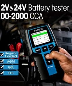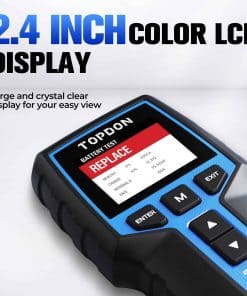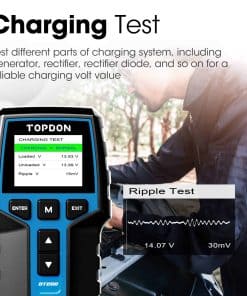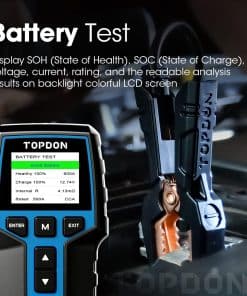 1. TOPDON BT200 probador de batería de coche de 12 V funciona en todas las baterías de 12 V y 24 V con 100 a 2000 CCA, como baterías regulares inundadas, AGM de placa plana, AGM de espiral, GEL y baterías de ciclo profundo para vehículos, coches, motocicletas, camiones, RVs, ATVs, SUVs, barcos, yates, cortadoras de césped e incluso carritos de golf. Con este probador de batería BT200, puede verificar la salud general de la batería, incluida la prueba de arranque, y realizar una prueba completa del sistema de carga. La prueba de arranque le ayuda a probar y analizar el motor de arranque para verificar si funciona correctamente o no, y la prueba de carga es para verificar el estado del sistema de carga y evitar dañar la batería debido a una sobrecarga o una carga incompleta. Es mucho más conveniente que conducir millas para encontrar el taller de reparación de automóviles más cercano. 3. Una herramienta imprescindible para bricoladores y profesionales El probador de batería TOPDON BT200 es una versión actualizada del BT100, AB101 y BT20. Aplicando la tecnología avanzada de pruebas de conductancia, puede brindarle resultados de prueba precisos en segundos. Ajuste en su guantera, es un dispositivo práctico para la fábrica de automóviles, el garaje, el fabricante de baterías de automóviles y el bricolador. 4. 2.4 pulgadas pantalla LCD a color A diferencia de la mayoría de las pantallas LCD monocromáticas en el mercado, el probador de carga de batería TOPDON BT200 está equipado con una pantalla LCD a color de 2.4 pulgadas, que es fácil de leer incluso bajo la luz solar directa. 5. Lo que obtienes Probador de batería de vehículo TOPDON BT200, manual de usuario y TOPDON ofrece 30 días de devolución y garantía de 12 meses sin preocupaciones y un servicio al cliente amigable. Si tiene alguna pregunta, también puede llamarnos directamente durante el horario laboral habitual: servicio telefónico de EE. UU. 833-956-8335 de lunes a viernes de 9:00 a.m. a 6:00 p.m. hora del este.
