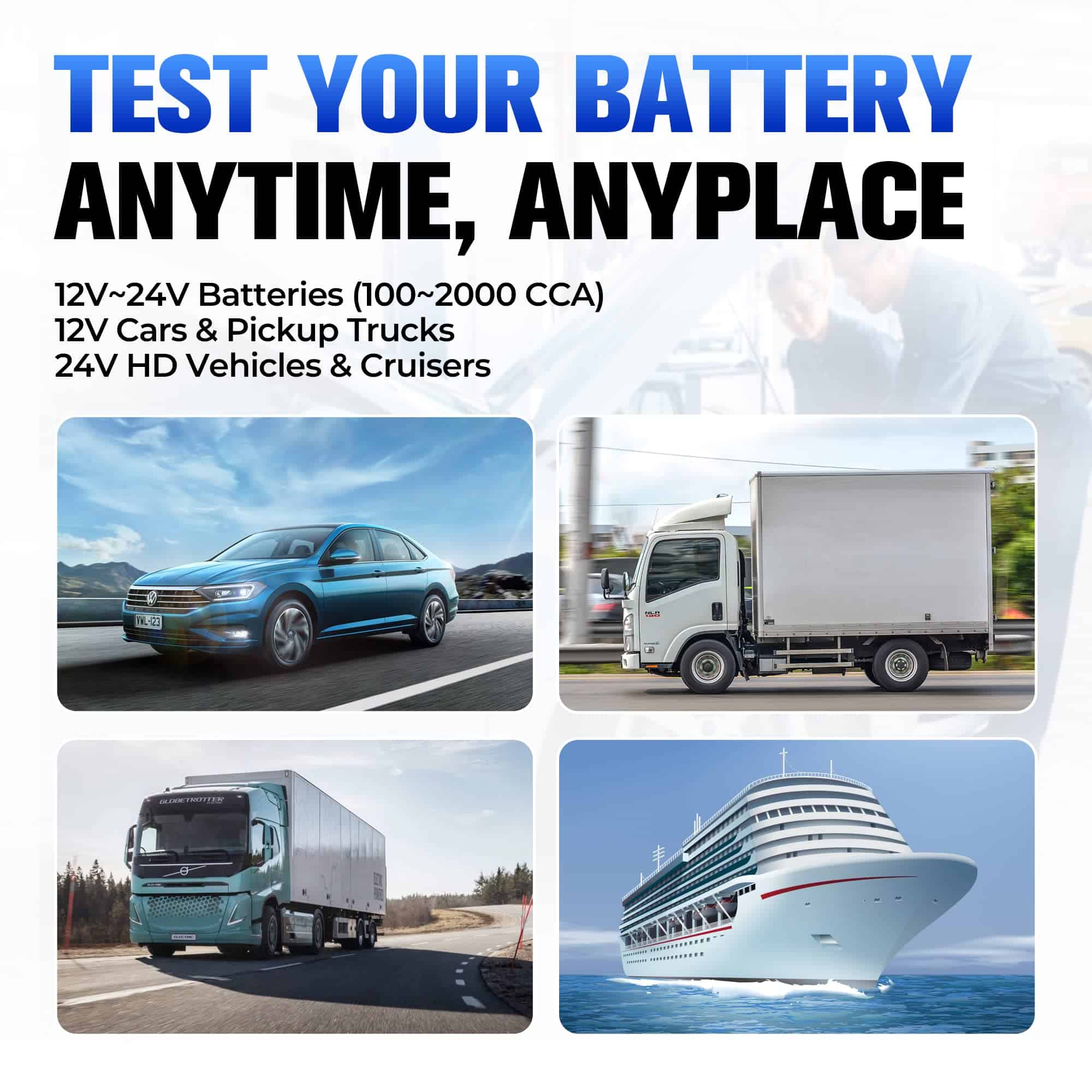 Probador de batería de coche 24V 12V, TOPDON BT200