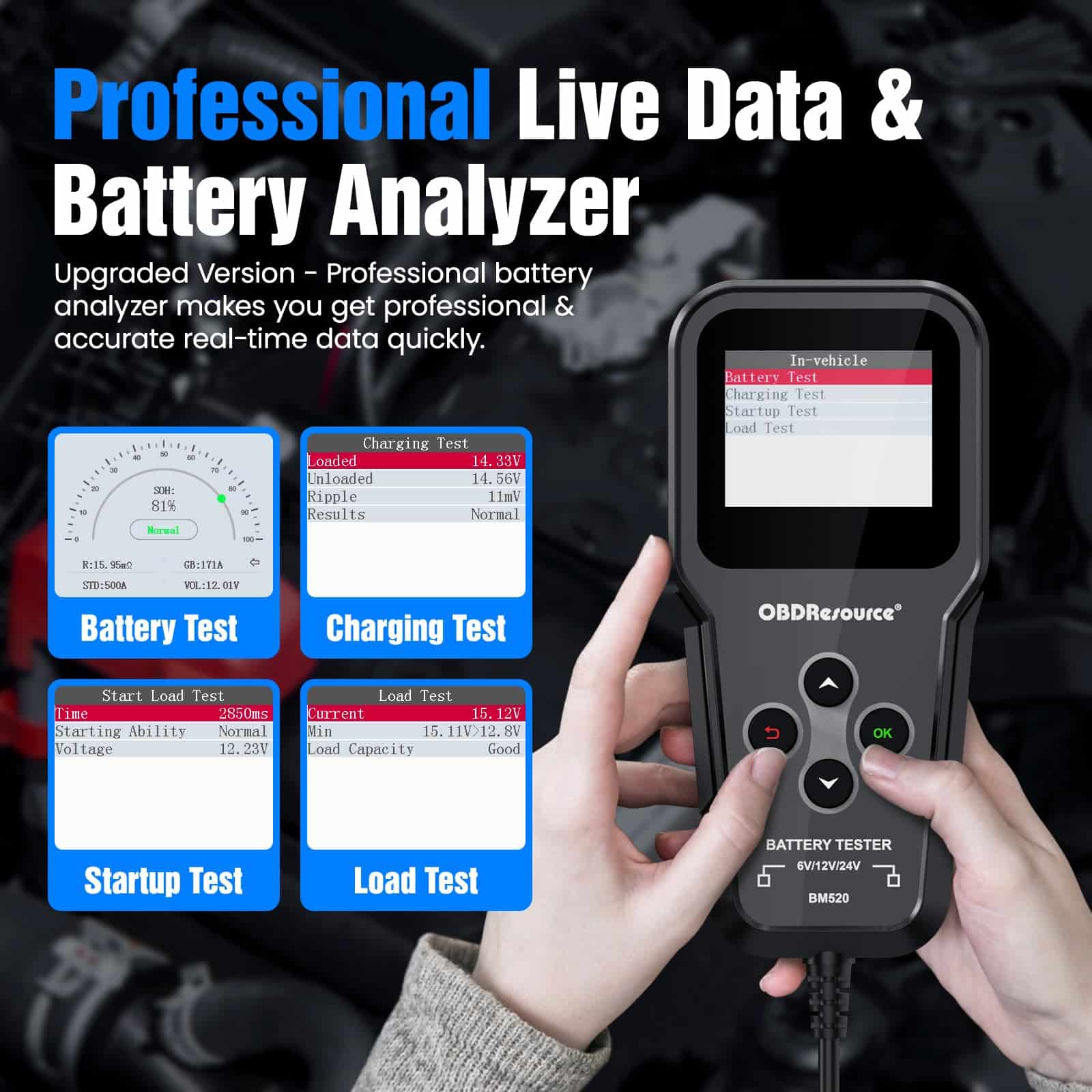 Probador de batería de coche OBDResource 6V 12V 24V 3 en 1