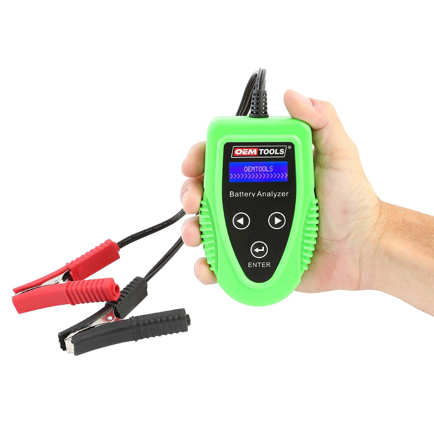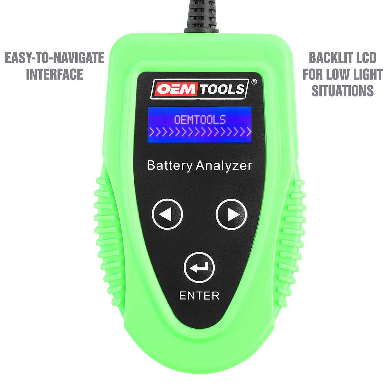 El Analizador de Batería Digital OEMTOOLS es un analizador de arranque y carga de batería seguro, rápido, sencillo y portátil. Este probador de carga de batería automotriz viene con una interfaz de navegación fácil de usar, con flechas izquierda/derecha y un botón «enter» para seleccionar opciones. Nuestro probador de batería digital funciona bien en condiciones oscuras debido a su pantalla LCD retroiluminada para situaciones de poca luz. Este probador de batería para automóvil de 12v le permite ver información precisa sobre el voltaje, carga del alternador, potencia de arranque, nivel de resistencia de Ohm y la condición de arranque del motor. Y este probador de batería para coche digital le permite probar el sistema de carga de su vehículo (es decir, voltaje de carga, voltaje sin carga, estado de ondulación y estado del sistema de carga). Nuestro dispositivo de prueba de carga de batería portátil incluye luces indicadoras convenientes para informarle sobre la condición de su batería, brindándole resultados en segundos. El probador de carga de batería para automóvil viene con un cable de 22 pulgadas y pinzas de cocodrilo aisladas para un uso seguro y fácil. Y este dispositivo de prueba de carga de batería de 12 voltios obtiene energía directamente de la batería que está probando, lo que facilita el transporte y el uso de este compacto probador de alternador y batería en cualquier lugar. Nuestra herramienta de diagnóstico de batería automotriz combina toda la información y características convenientes que necesita en un solo probador de batería de 12 voltios pequeño, lo que facilita y rápido el acceso a una amplia gama de información crítica sobre su vehículo.