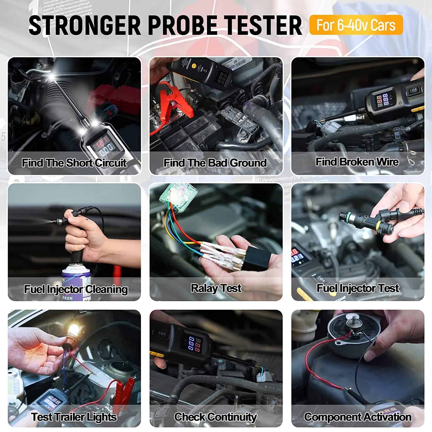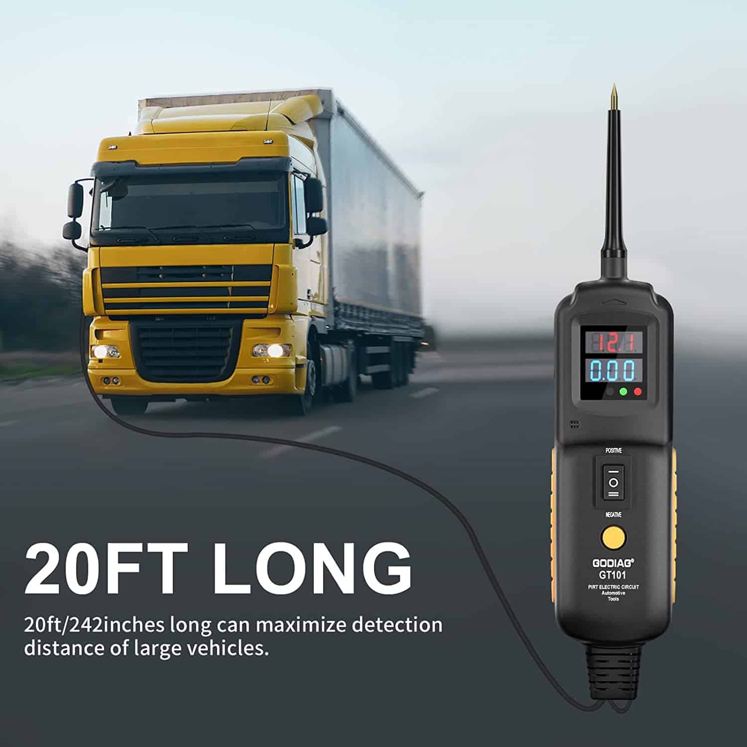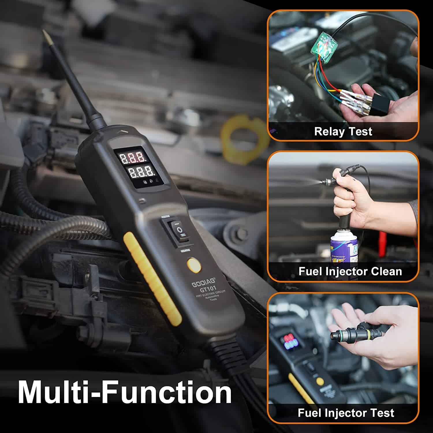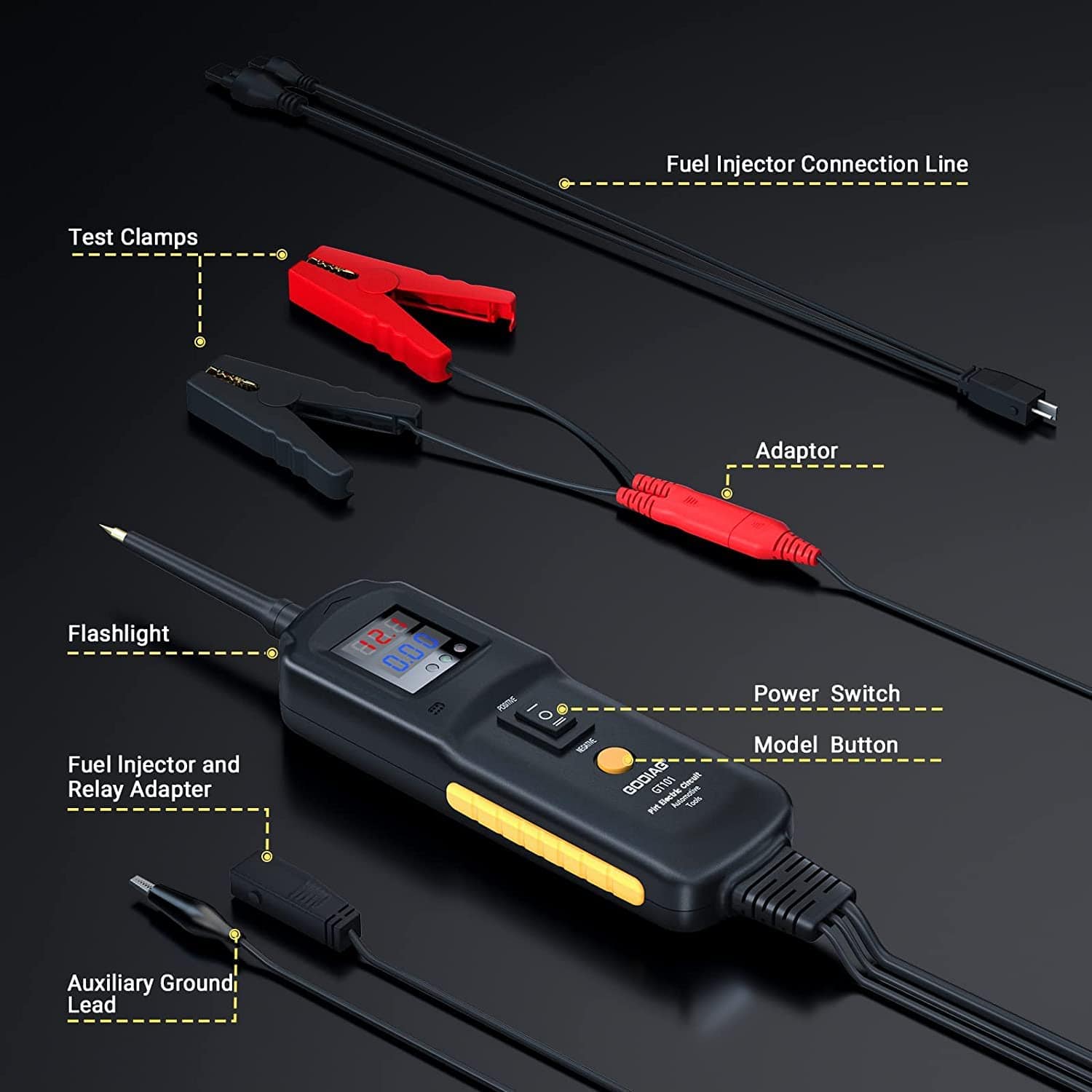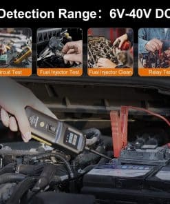 El Probador de Circuito 4 en 1 GODIAG GT101 es una herramienta de mantenimiento y detección de circuitos dedicada desarrollada para personal de mantenimiento automotriz e ingenieros. Soporta la detección de circuito abierto, circuito corto y voltaje. Las Herramientas Automotrices GT101 se pueden utilizar para la detección de motores, la detección de lámparas, la detección de señales de velocidad y la detección de accesorios eléctricos, es una herramienta avanzada para la detección de circuitos positivos y negativos. Al mismo tiempo, el Probador Eléctrico GT101 también se puede utilizar para pruebas de fusibles, pruebas de voltaje de batería, pruebas de corriente, pruebas de relay, así como pruebas y limpieza de inyectores de combustible.
