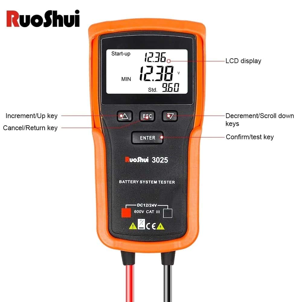 Probador de sistema de batería RuoShui 3025 12V 24V DC