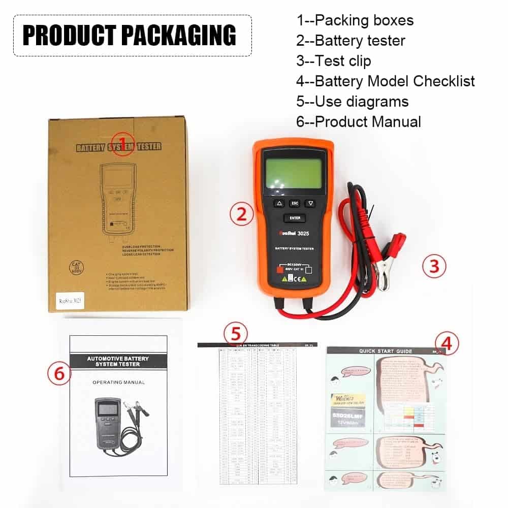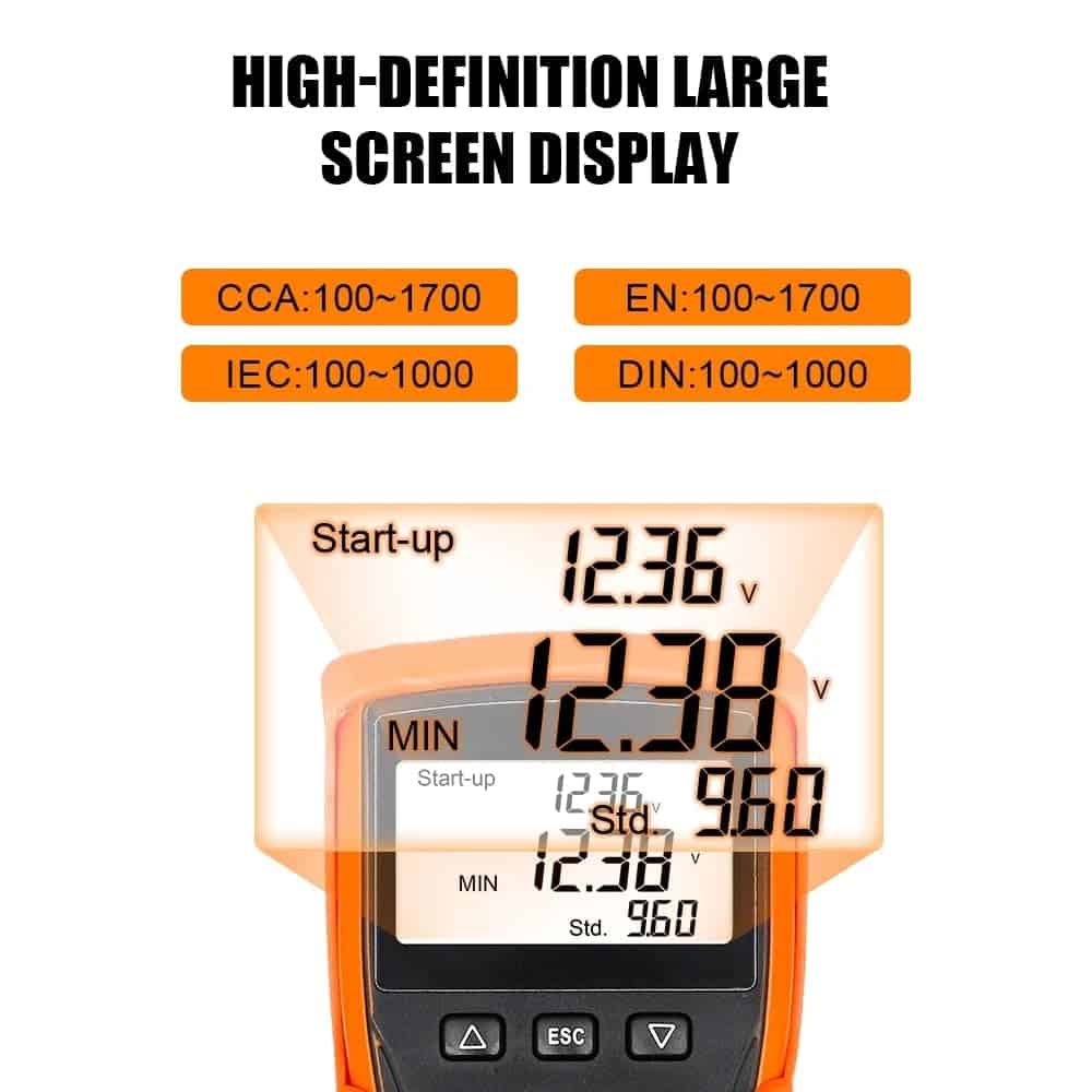 1. Probador de batería de 12V y 24V. El probador de batería es adecuado para todas las baterías de plomo-ácido de 12V y 24V con capacidades de batería de 100 a 1700 CCA. Esta herramienta de prueba de batería es útil para ventas de baterías, reparación de vehículos y comprobación de condiciones de todo tipo de baterías de plomo-ácido que se utilizan en sistemas de equipos asociados con baterías de plomo-ácido.