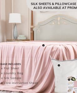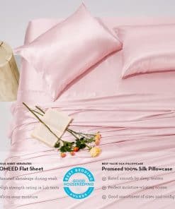 PROMEED 23 Momme Sábana de Seda de Mora tamaño King/California King,1 pieza. Ofrecerle una nueva visión para su vida. Este juego de sábanas de seda de la mejor calidad está hecha de 100% seda de mora natural, con 23 momme de grosor y una sensación muy suave y agradable al tacto. La sábana de seda proporciona una sensación de hotel de cinco estrellas, suave y cómoda para una noche de sueño reparadora. La sábana superior de seda es una opción ideal para aquellas personas que sufren de alergias y problemas de piel, ya que la seda es hipoalergénica y ayuda a prevenir la sequedad y las arrugas de la piel. Esta sábana de seda de mora tiene un tejido de satén liso y duradero que se siente fresco al tacto y no retiene el calor, ideal para personas que duermen calientes. La sábana de seda de PROMEED está diseñada para proporcionarle un sueño reparador y confortable, manteniendo su piel e cabello saludables. Disfrute de la vida de lujo con nuestra sábana de seda de mora de 23 momme PROMEED.