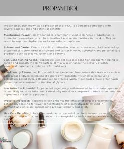 Mejora la textura y apariencia de la piel. Propanediol mejora la extensión y absorción de las formulaciones, dejando una sensación suave, lisa y acondicionada. Deléitate a los consumidores con productos que ofrecen una experiencia sensorial lujosa y una mejora notable en la piel.