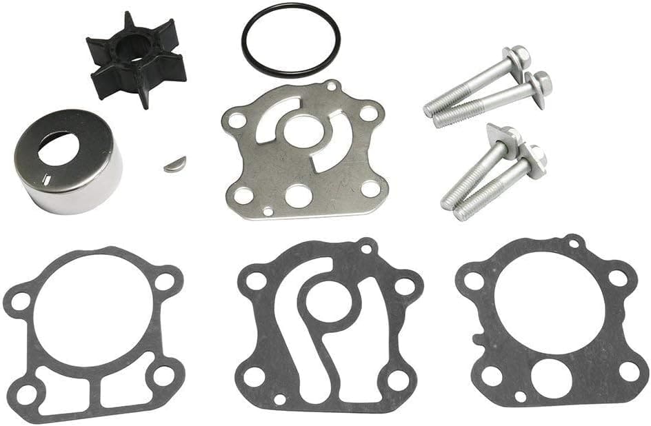 (1) Kit de reparación de la bomba de agua de repuesto de alta calidad a estrenar. El kit incluye: 1 x Impulsor de Neopreno (6H3-44352-00-00) Número de Aspas del Impulsor: 6, 1 x Inserto de Cartucho (663-44322-00-00), 1 x Placa Externa de Cartucho (6H3-44323-00-00), 1 x Anillo en O (93210-46044-00), 1 x Chaveta (90280-03M03-00), 2 x Perno con Arandela (97395-08045), 2 x Perno con Arandela (97395-08055), 1 x Junta, Bomba de Agua (6H3-44315-A0-00), 1 x Junta, Bomba de Agua (6H3-44316-A0-00), 1 x Junta, Cartucho Externo (6H3-44324-A0-00). Se ajusta a Yamaha 50 HP 4-Tiempos (Modelo T50) 1997 – 2010 60 HP 2-Tiempos (Modelo C60) 1996 – 2001 60 HP 2-Tiempos (Modelo E60) 1995 – 1996 60 HP 2-Tiempos (Modelo P60) 1992 – 1999 60 HP 2-Tiempos 2001 – 2003 60 HP 4-Tiempos (Modelo T60) 2003 – 2010 70 HP 2-Tiempos 1992 – 2003 70 HP 2-Tiempos (Modelo C70) 2000 – 2001 2-Tiempos: 60F (1997-2003) 70B (1997-2003) 4-Tiempos: FT50B (1997-2002) FT50C (2003-2007) FT50G (2005-2012) FT50J FT60G (2013 – UP) FT60B (2003-2006) FT60D (2005-2012). Reemplazo para Número de Parte 6H3-W0078-00, 6H3-W0078-00-00, 6H3-W0078-02, 6H3-W0078-02-00, 6H3-W0078-A0, 6H3-W0078-A0-00, 6H3-W0078-01, 6H3-W0078-01-00. También reemplazo para la Parte de Sierra 18-3465.
