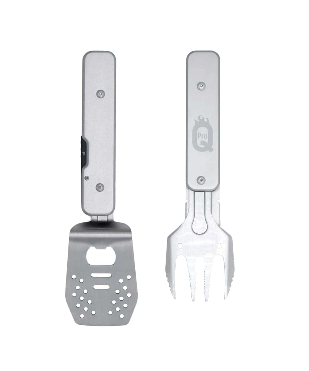 1. 4 EN 1 – Combinando cuatro accesorios de BBQ vitales en una sola pieza de equipo, la Multi-herramienta ProQ incorpora pinzas, una espátula, tenedor de parrilla y abrebotellas, transformándose sin esfuerzo entre funciones.
