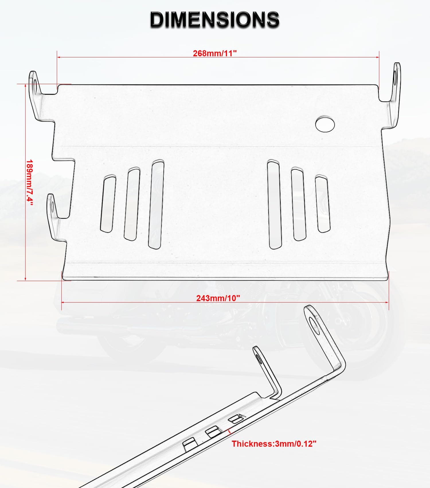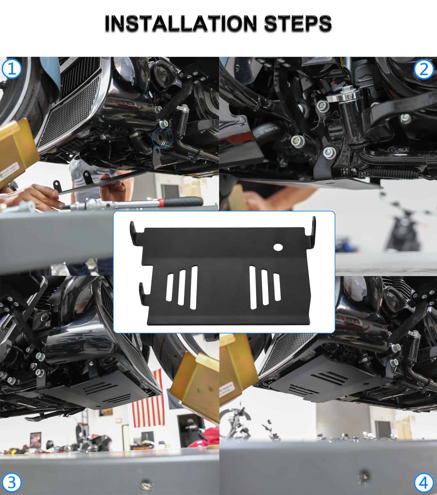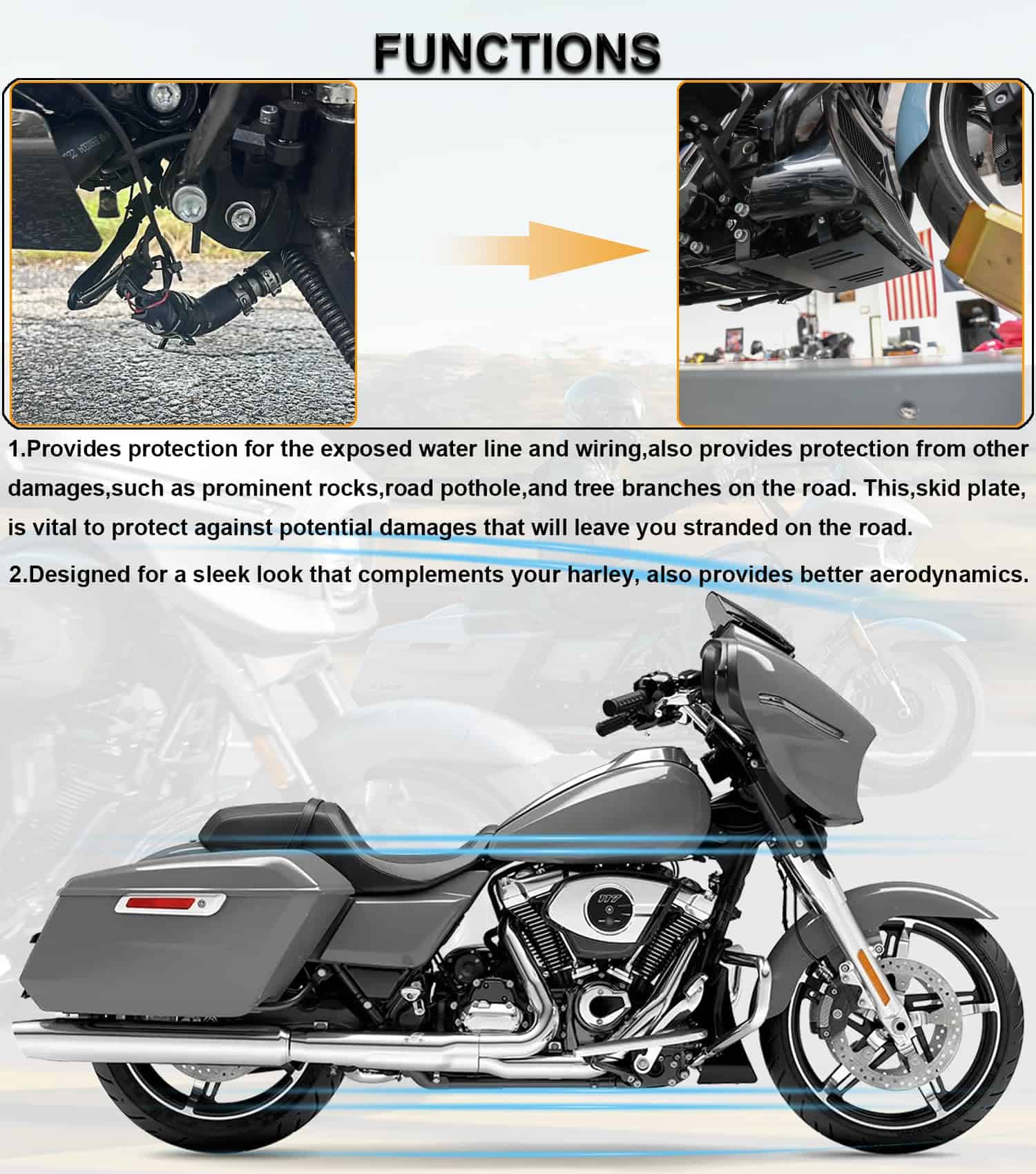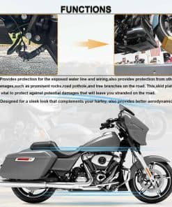 Descripción: Se trata de una pieza de mercado de accesorios para Harley Touring Street Glide, CVO Street Glide, Road Glide, CVO Road Glide, CVO Road Glide ST 2024 y posterior. Color: Negro o Plata. Material: Aluminio. Grosor: 0.125″. Fácil de instalar, usar los pernos de fábrica. No incluye manual de instrucciones. Paquete incluido: 1 pieza de placa de deslizamiento. Características: Esta placa de deslizamiento proporciona protección para la línea de agua expuesta y el cableado que se encuentra entre el chasis y el radiador en modelos Touring 2024 en adelante. Esto es vital para protegerse contra los daños que lo dejarán varado en la carretera, lejos de la ayuda. La combinación perfecta de la separación entre el motor y la placa protectora asegura que los golpes se absorban entre los huecos mientras se garantiza que la altura mínima al suelo no se reduzca. Aluminio grueso ligero y resistente, el grosor para desviar con confianza los escombros de piedra y los impactos de objetos inesperados. Instalación directa sin modificaciones. Adaptación: para CVO Road Glide ST FLTRXSTSE 2024 y posterior, para Road Glide FLTRX 2024 y posterior, para Street Glide FLHX 2024 y posterior, para CVO Street Glide FLHXSE 2024 y posterior, para CVO Road Glide FLTRXSE 2024 y posterior