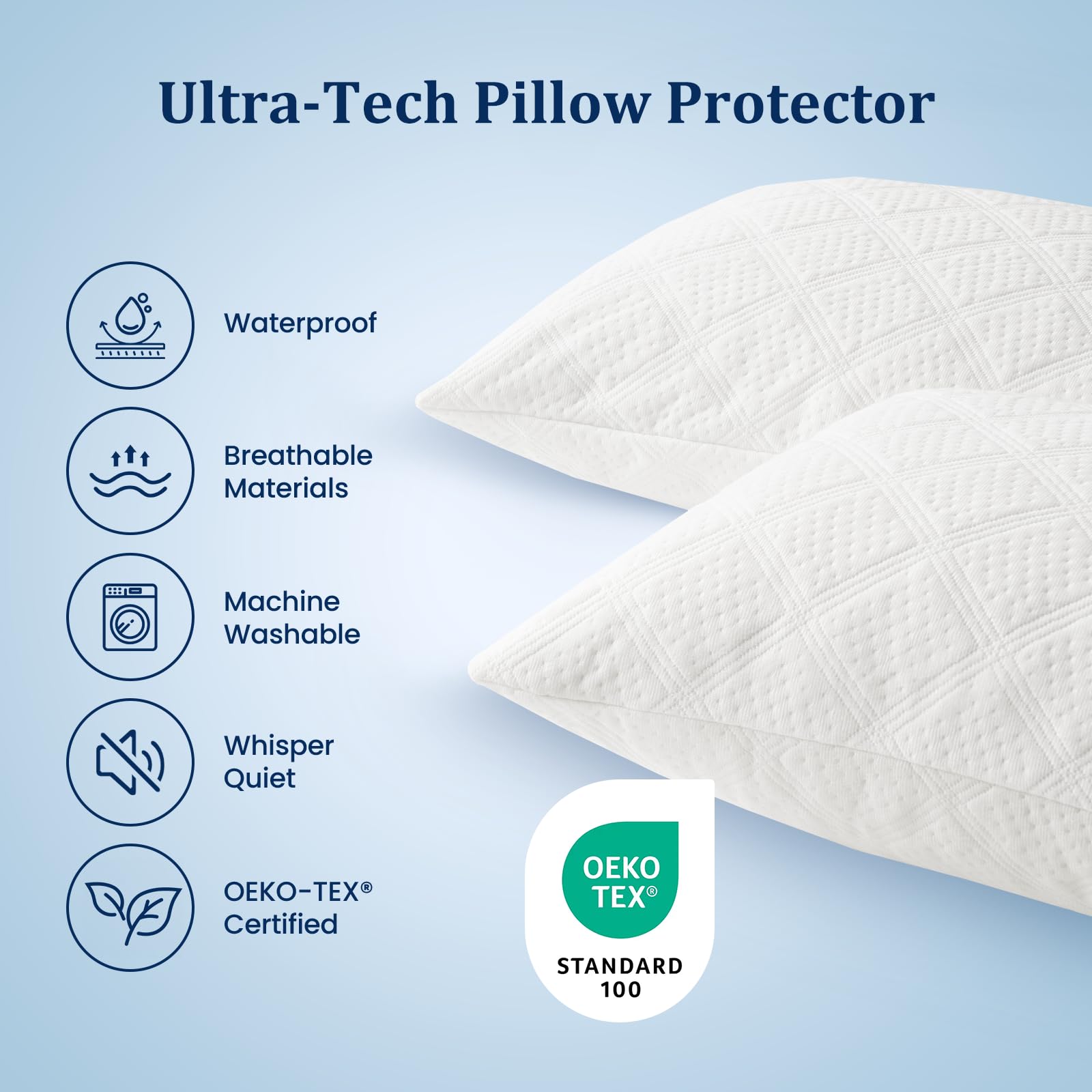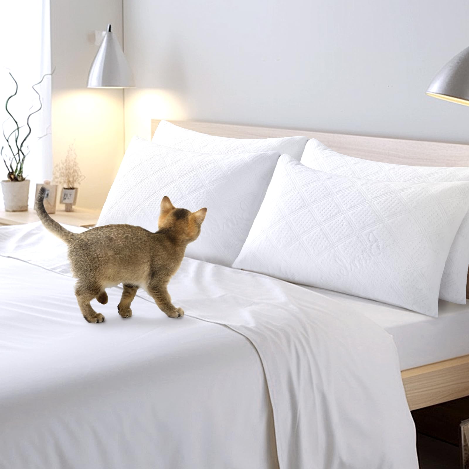 3. TRANSPIRABLE Y SUAVE: Este protector de almohada impermeable está hecho de fibra de rayón de bambú de alta densidad de 230 g/m², proporcionando protección impermeable adicional y una comodidad superior al tiempo que mantiene la transpirabilidad para un sueño más saludable y confortable.
