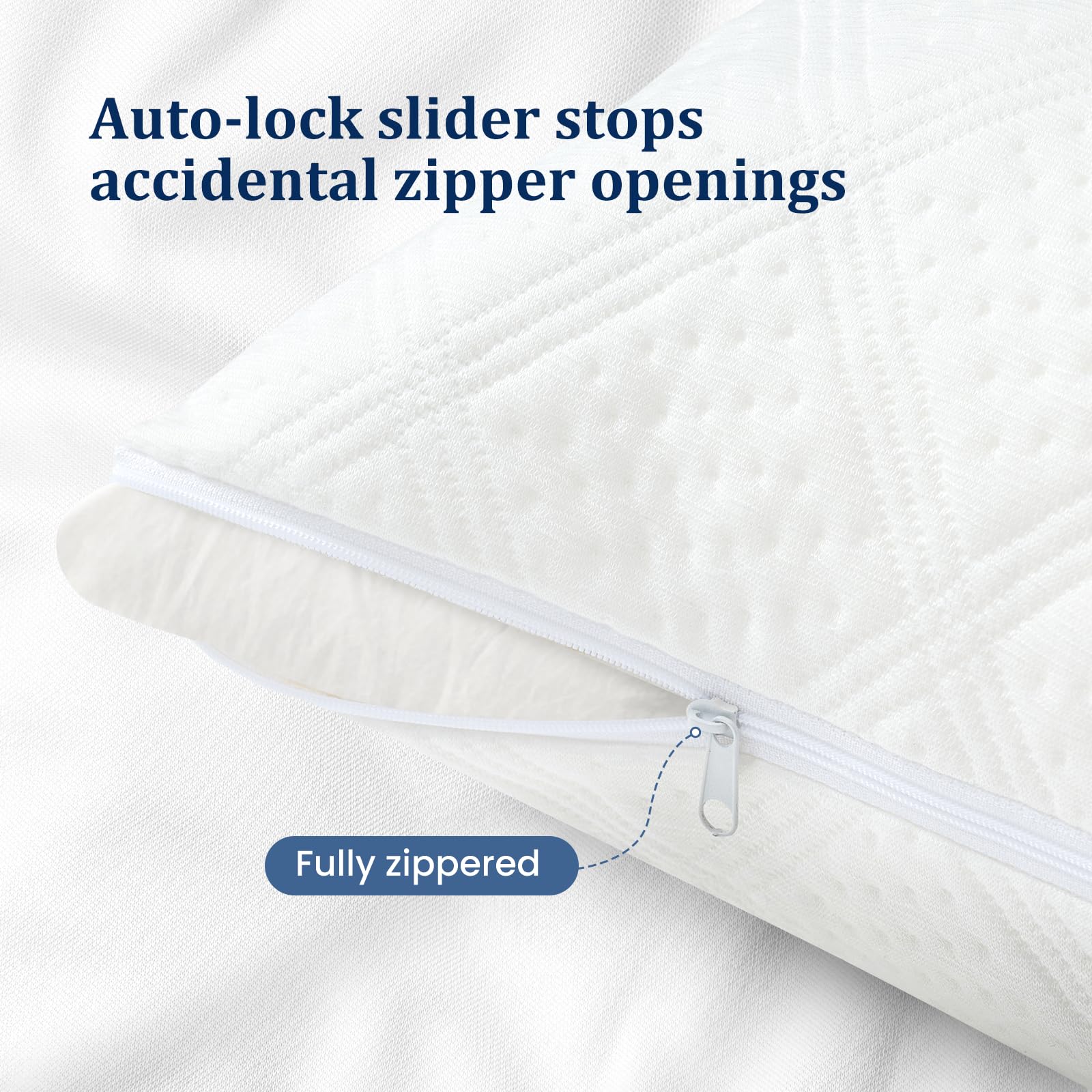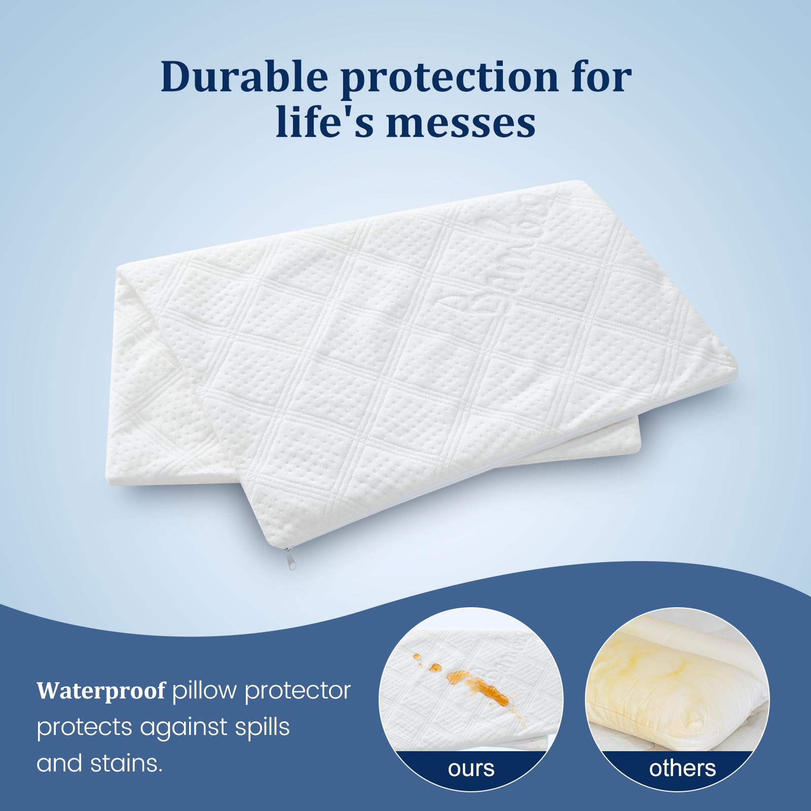2. Protección 100% impermeable: Los protectores de almohadas estándar con cremallera cuentan con una tecnología avanzada de revestimiento impermeable que evita por completo que los líquidos penetren, manteniendo su almohada seca en cualquier situación. Ya sea sudor, aceites o derrames accidentales, su almohada permanecerá fresca y protegida.