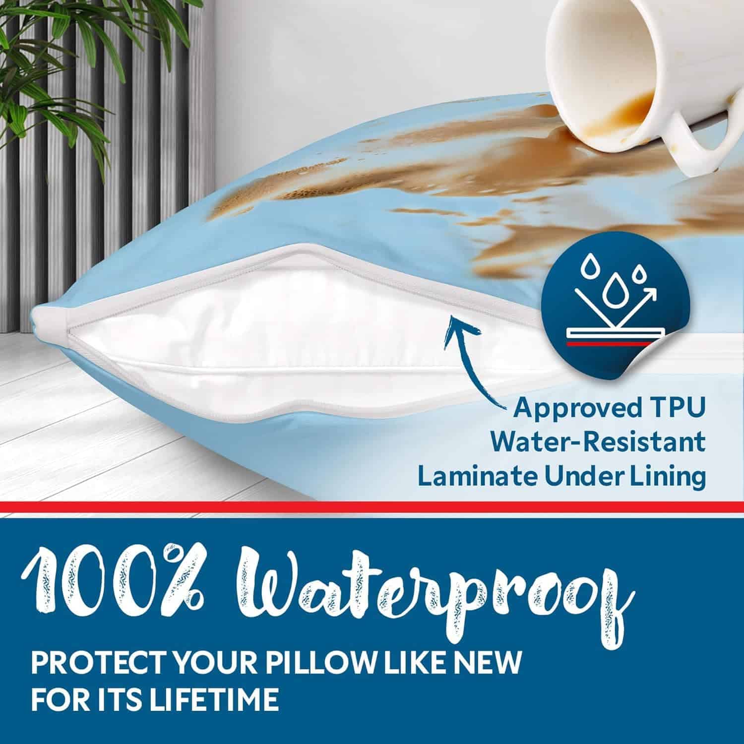 Los protectores de almohada Guardmax son la manera perfecta de proteger tus almohadas contra la sudoración, babeo, derrames de líquidos, manchas, chinches de cama, ácaros del polvo y otras alergias. El protector de almohada Guardmax está hecho de un tejido 100% impermeable que también es hipoalergénico y prueba de chinches. El protector de almohada tiene un diseño de cremallera patentado que garantiza que ningún mal se escape una vez que coloque la funda de almohada y la cierre con cremallera. El protector de almohada también es suave y cómodo, y no se arruga y es fácil de lavar. El protector de almohada impermeable de Guardmax brinda una protección confiable contra la sudoración, babeo, derrames de líquidos y manchas. Con nuestra barrera impermeable avanzada, tu almohada se mantiene limpia, fresca y libre de cualquier humedad no deseada.