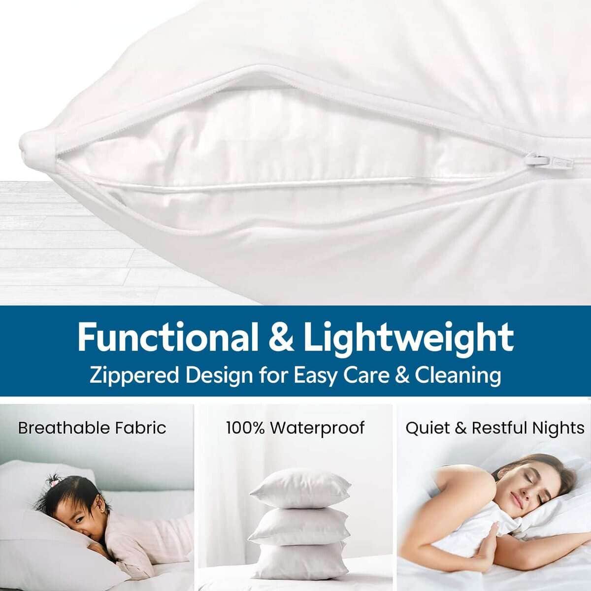 Protector de almohada premium Guardmax con cremallera tamaño king – Paquete de 6 fundas impermeables y a prueba de chinches para almohadas. Este protector de almohada 100% impermeable protege contra la transpiración, babeo, derrames de líquidos y manchas. El cierre de cremallera está diseñado con la Tecnología Patentada Guardmax para sellar su almohada de cualquier chinche que intente penetrar. Las fundas de almohada Guardmax están diseñadas para proteger contra ácaros del polvo y otros alérgenos que puedan entrar en contacto con su piel. Guardmax tiene un diseño de cremallera patentado que es extremadamente efectivo para asegurar que ningún mal escape una vez que coloque la funda de almohada y la cierre. Disfrute de una buena noche de sueño con el protector de almohada Guardmax diseñado para ser suave y suave al contacto con la piel. Fabricado con un tejido de poliéster sintético, la funda de almohada Guardmax no se arruga ni hace ruido cuando se mueve la cabeza sobre ella. Las fundas de almohada Guardmax están hechas de un tejido de poliéster sintético que es resistente a las arrugas, por lo que puede mantener fácilmente su almohada como nueva. Las manchas y derrames y lo que sea que arroje a este protector de almohada se quitarán fácilmente en la lavadora.