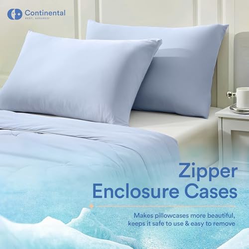Asegura que tus almohadas se mantengan frescas y protegidas con el Protector de Almohada Refrigerante Arctic Dreams con Cierre de Cremallera por Continental Bedding. Hecho de una tela de poliéster/nylon de alta calidad, este protector de almohada cuenta con una tecnología avanzada de refrigeración para ayudar a regular la temperatura de tu sueño. El conveniente cierre de cremallera mantiene tus almohadas seguras en su lugar y protegidas del sudor, la suciedad y los accidentes. Disponible en tamaños Estándar, Queen y King, puedes elegir el ajuste perfecto para tus almohadas. Además, con opciones de un paquete de 1 o 2, puedes obtener la protección que necesitas a un gran valor. Mantén tus almohadas frescas, limpias y cómodas con el Protector de Almohada Refrigerante Arctic Dreams.