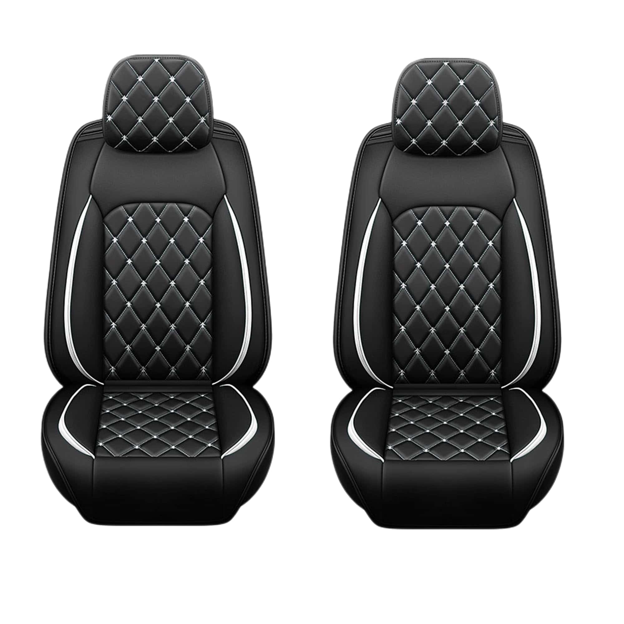 Universal fit para la mayoría de sedanes, SUV, camionetas pickup. Incluye 2 fundas para asientos delanteros. Diseño novedoso con reposacabezas totalmente cubiertos con tela de spandex. Material elegante y ecológico, hecho de cuero de poliuretano de microfibra premium y rayón de alta rebote: suave, durable y transpirable. Mejora el aspecto de tu auto al instante con estas fundas. Resistente al desgaste e impermeable, no destiñe. Se adapta a calefacción de asientos, ventilación, cinturones de seguridad, airbags, portavasos y asiento trasero partido 40/60. Las fundas delanteras tienen bolsillos de almacenamiento para llaves, teléfonos y revistas. Fácil de instalar y limpiar. Gran regalo para amigos y familiares. Garantía de satisfacción del cliente, devolución del dinero si no estás satisfecho.