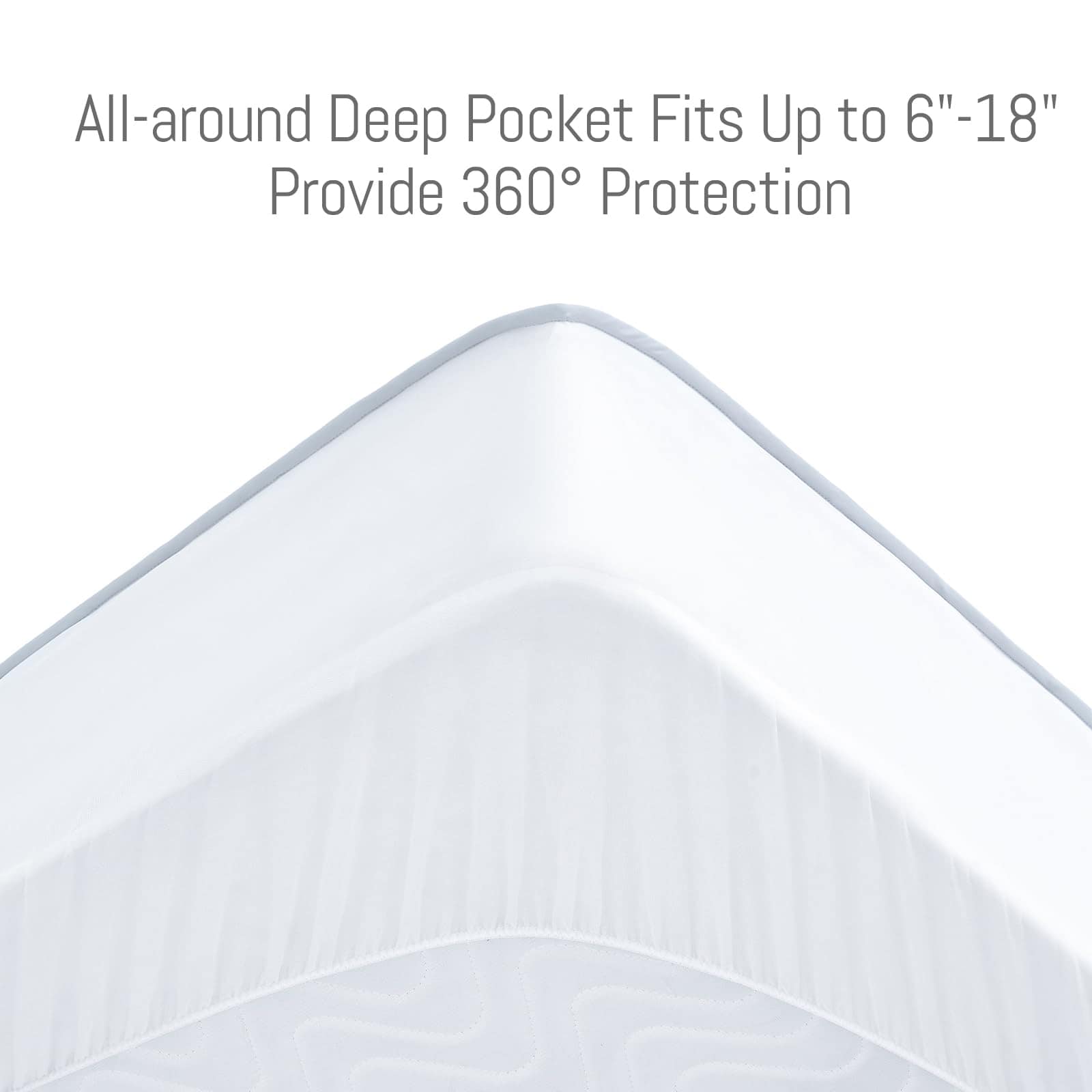 4. AJUSTE PERFECTO Y BOLSILLO PROFUNDO: 360 bolsillo profundo proporciona protección completa para su colchón y se adapta a todo tipo de colchones, incluidos los de espuma viscoelástica, látex o muelles.