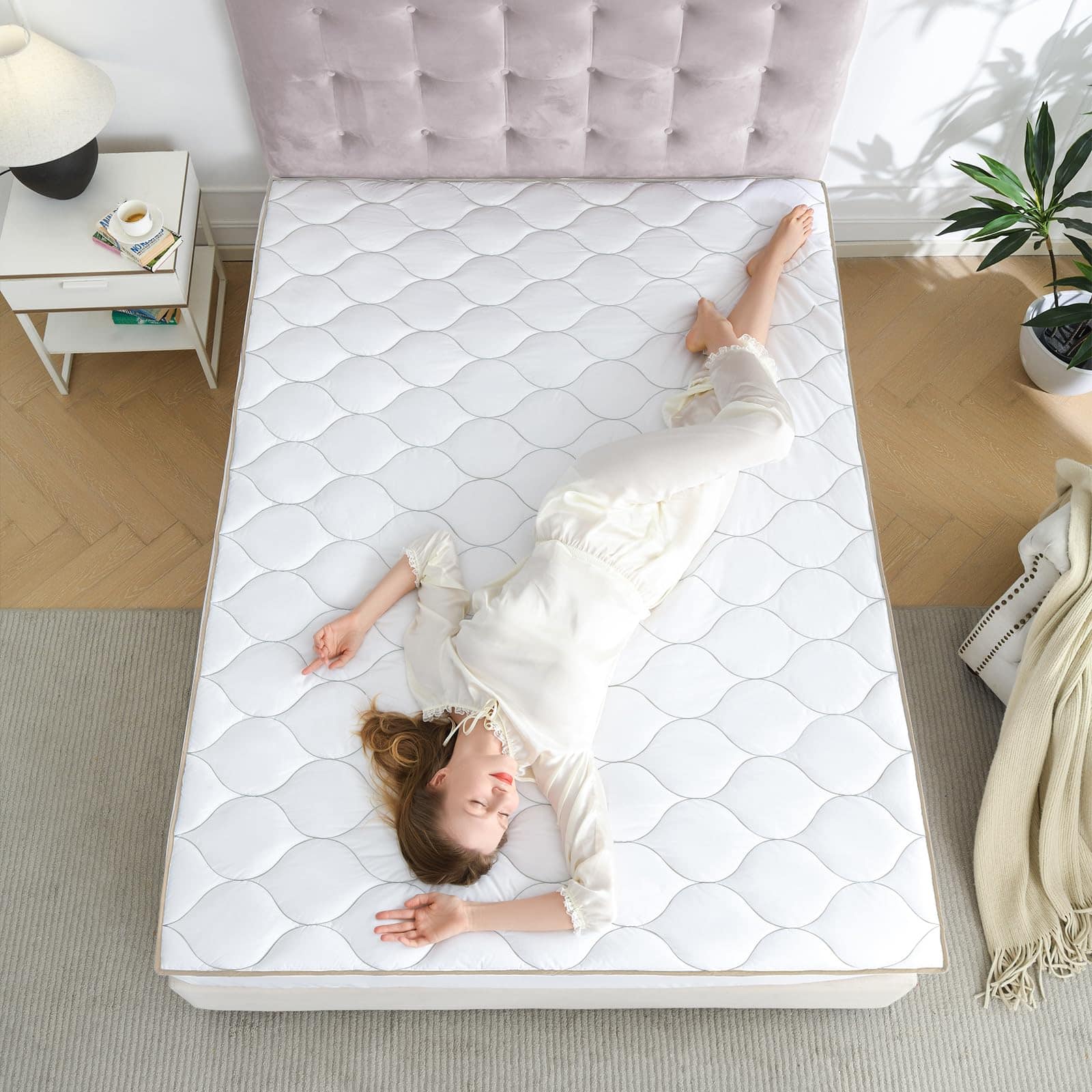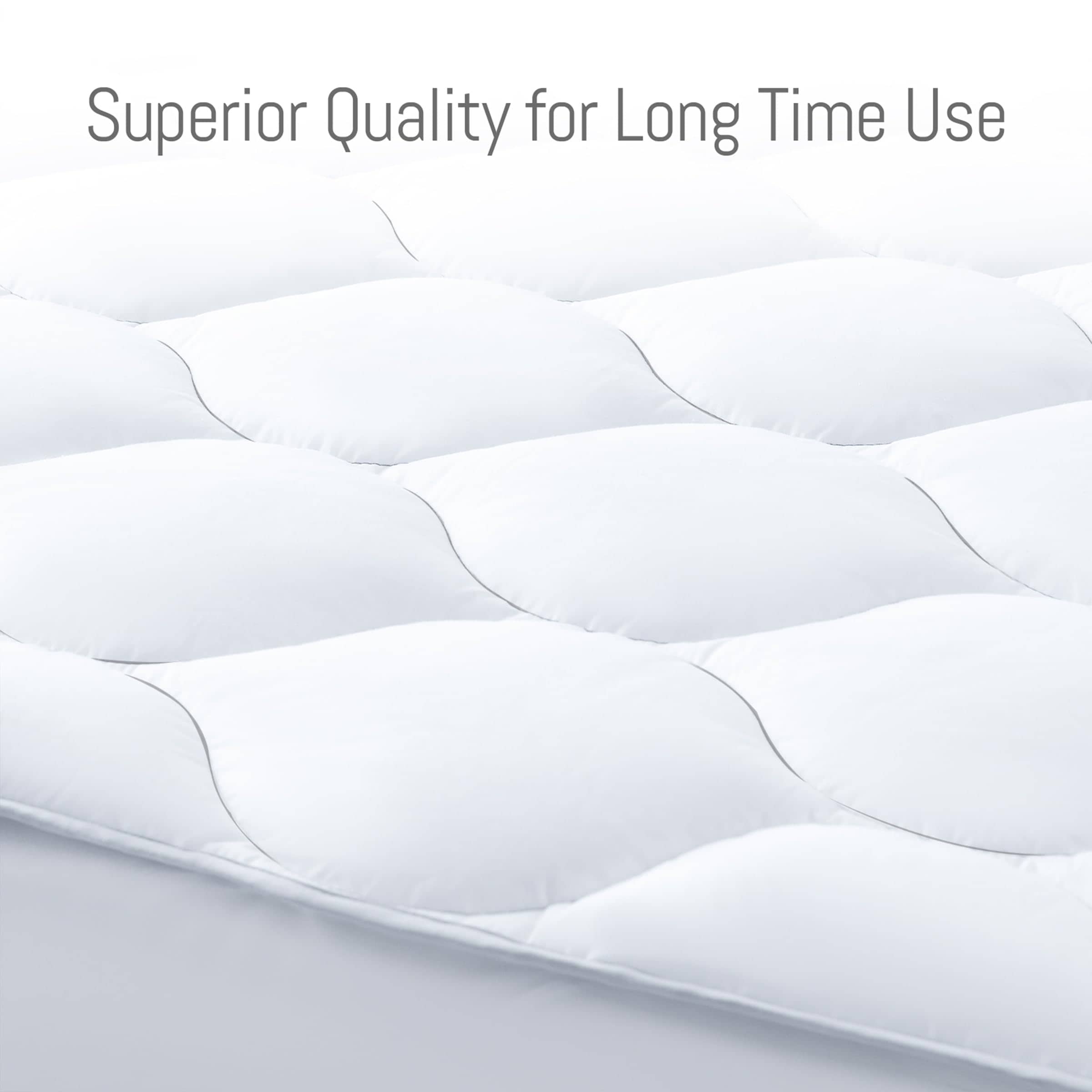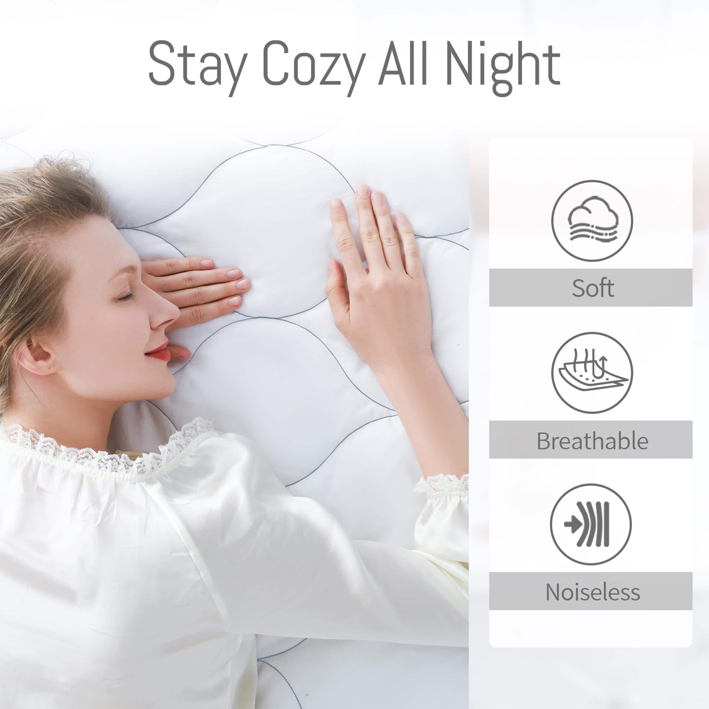 3. MEJORA TU SUEÑO: Construido con poliéster de alta calidad y una tela transpirable de artesanía superior que promueve el flujo de aire y regula la temperatura. El protector de colchón suave y silencioso te hace dormir pacíficamente e ininterrumpidamente incluso cuando cambias de posición en medio de la noche.