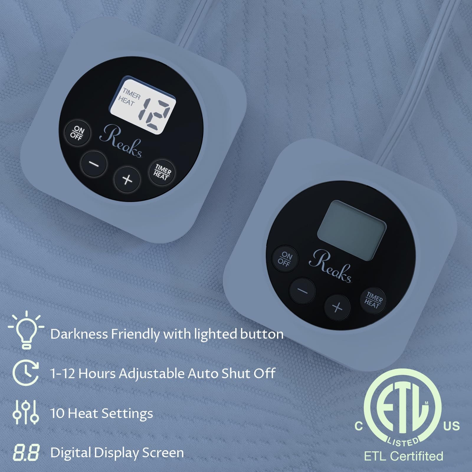1. Ajustes de control dual Disfruta de la comodidad personalizada con calefacción de zonas duales, lo que permite ajustar cada lado de la cama de forma independiente a la temperatura deseada, perfecto para parejas con preferencias diferentes.