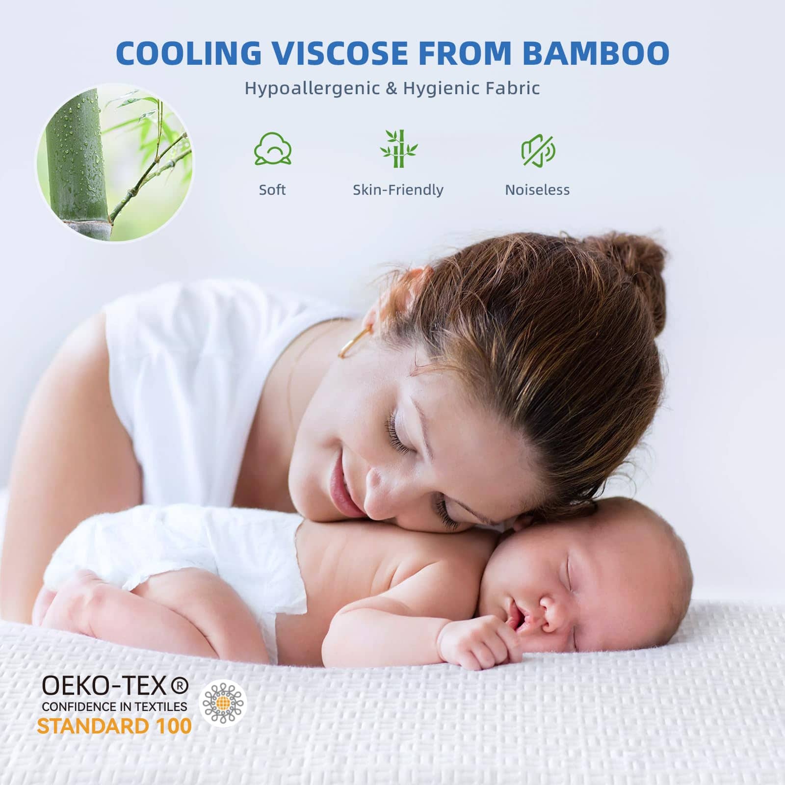 2. CERTIFICADO OEKO-TEX STANDARD 100: LA MEJOR CALIDAD Y CONFIANZA – El protector de colchón king impermeable RestGuard está certificado según el ESTÁNDAR 100 de OEKO-TEX, que es el sello ecológico textil más autoritario e influyente del mundo. Puedes estar seguro de que puedes dormir directamente en nuestro protector de colchón king, ya que no contiene ningún blanqueador químico ni sustancias dañinas como vinilo y benceno.