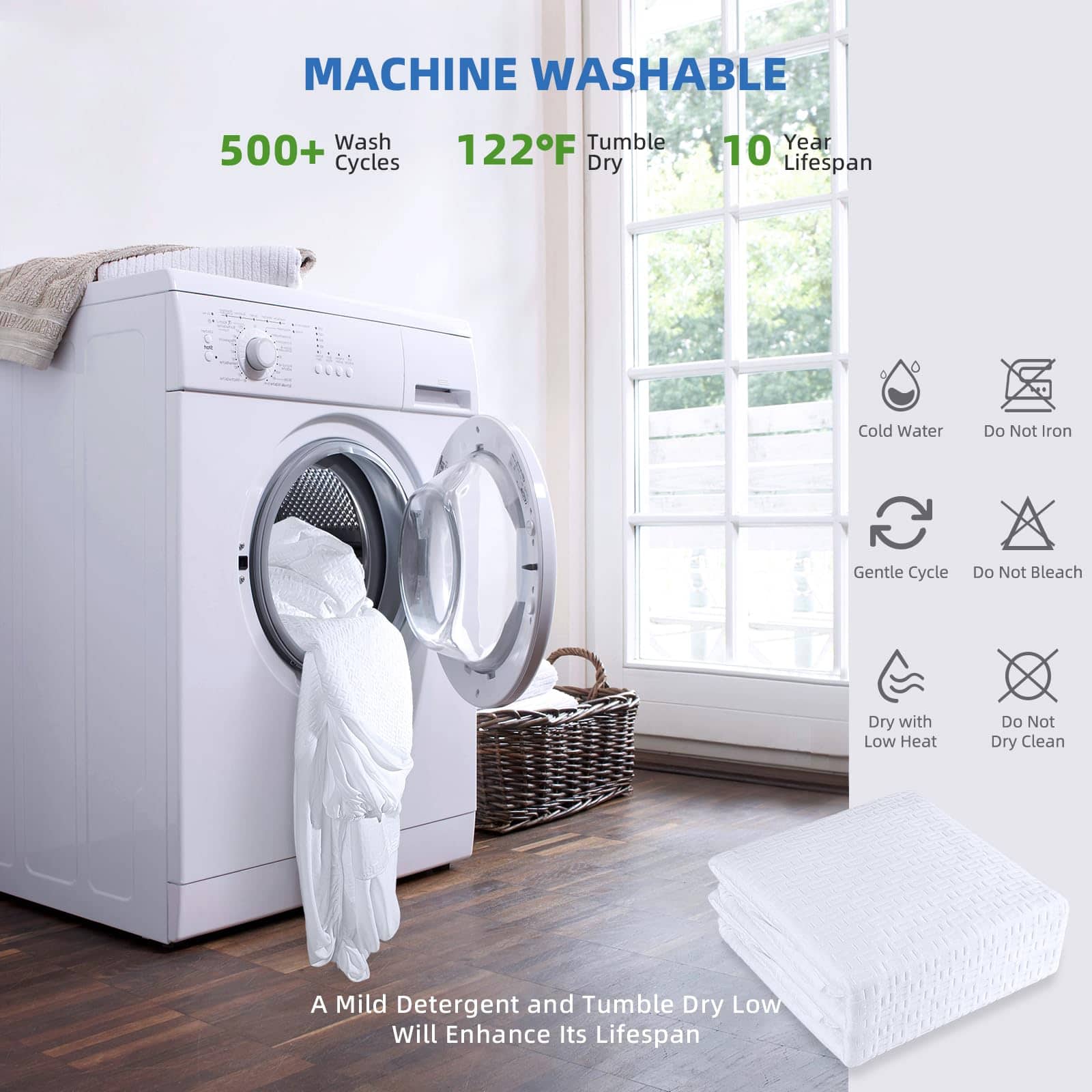 5. LAVABLE A MÁQUINA Y AMIGABLE PARA SECADORA – El protector impermeable RestGuard es fácil de limpiar después del uso diario. Limpiar la almohadilla es una tarea sencilla, se puede lavar a mano o a máquina con un detergente suave (sin lejía) y secar en secadora a baja temperatura (no exceder los 40 C / 104 ) para prolongar su vida útil. Lávelo regularmente, solo introdúzcalo en la máquina ahora.