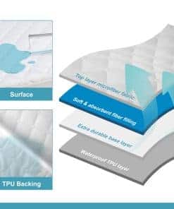 Nuestro protector de colchón impermeable NTBAY está diseñado para proteger tu colchón de manera silenciosa y efectiva. Está fabricado con una superficie de microfibra premium y una capa de membrana de TPU impermeable que garantiza la máxima protección contra derrames y accidentes. La membrana de TPU ofrece una barrera impermeable que protege tu colchón de cualquier líquido no deseado, como derrames accidentales, sudor, orina, jugo, etc. Además, el tejido TPU es silencioso, lo que te permite moverte libremente durante la noche sin preocuparte por despertar a tu pareja.
