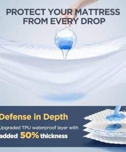 2. DEFENSA EN PROFUNDIDAD: El protector de colchón impermeable Novted puede parecer más grueso que cualquier otro que hayas tenido antes, pero eso es lo que hace que nuestro protector de colchón cal king sea impermeable y duradero. La capa impermeable TPU mejorada puede bloquear cualquier derrame o caída accidental durante la noche y seguir funcionando bien incluso después de más de 500 lavados. ¡Mantén tu colchón limpio y fresco durante décadas!.