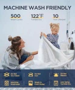 4. USO FÁCIL, CUIDADO FÁCIL: Nuestra cubierta de colchón cal king viene en estilo de sábana ajustable con 6 tamaños habituales para adaptarse a tus diferentes necesidades. El bolsillo profundo y elástico podrían ajustarse perfectamente a los colchones de 6″-21″ de altura. ¡Dile adiós a las complicadas instrucciones de cuidado! Nuestra cubierta de colchón es muy fácil de limpiar, simplemente mételo en la lavadora con agua fría y sécalo en secadora a baja temperatura por debajo de 122 °F. Simplifica tu vida con un mantenimiento sencillo y disfruta de más tiempo para lo que verdaderamente importa.