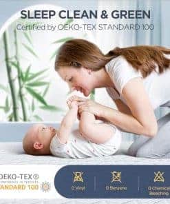 3. EXPERIMENTA NOCHES TRANQUILAS Y SEGURAS: Gracias al premium rayón de bambú mezclado con poliéster, el protector de colchón refrigerante Novted es suave al tacto y disipa rápidamente el calor. La tela seleccionada también te brinda una noche tranquila sin ruido alguno. Certificado por OEKO-TEX STANDARD 100, nuestra cubierta de colchón cal king está libre de vinilo, benceno y blanqueador químico, lo que la convierte en una opción segura para todos en tu familia, incluidos bebés, niños y ancianos.