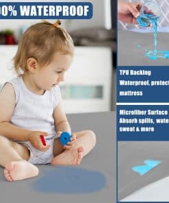1. Protector de colchón Queen: El tamaño Queen (39″ x 75″) de la cubierta de colchón adopta un respaldo de TPU 100% impermeable, diseñado para ser una barrera impermeable invisible para proteger su costoso colchón, repeliendo efectivamente todos los líquidos (incluidos derrames accidentales, fluidos corporales como sudor u orina), creando un ambiente de sueño limpio y saludable. También es libre de PVC y vinilo, perfecto para niños, mascotas, personas mayores y más.