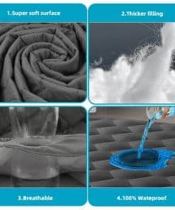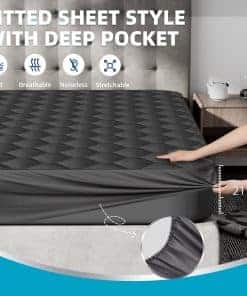 El diseño de bolsillo profundo del protector de colchón se ajusta de forma segura hasta 21 pulgadas de profundidad, con una falda elástica de alta recuperación y una banda elástica más ancha que mantienen la cubierta de la cama en su lugar sin moverse durante la noche. Esta cubierta de colchón king es fácil de cuidar y mantener, ya que es lavable a máquina con agua fría en un ciclo suave y se puede restaurar su esponjosidad simplemente con un poco de sol y cariño.