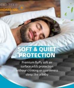 Certificado por OEKO-TEX Standard 100, puede dormir tranquilo sabiendo que nuestro protector de colchón king está libre de sustancias químicas dañinas. Este protector de colchón impermeable es la elección perfecta como regalo para pet owners, la tercera edad, nuevas madres, nuevos propietarios o personas con problemas de movilidad, ya que combina comodidad y protección confiable para mejorar su calidad de sueño.
