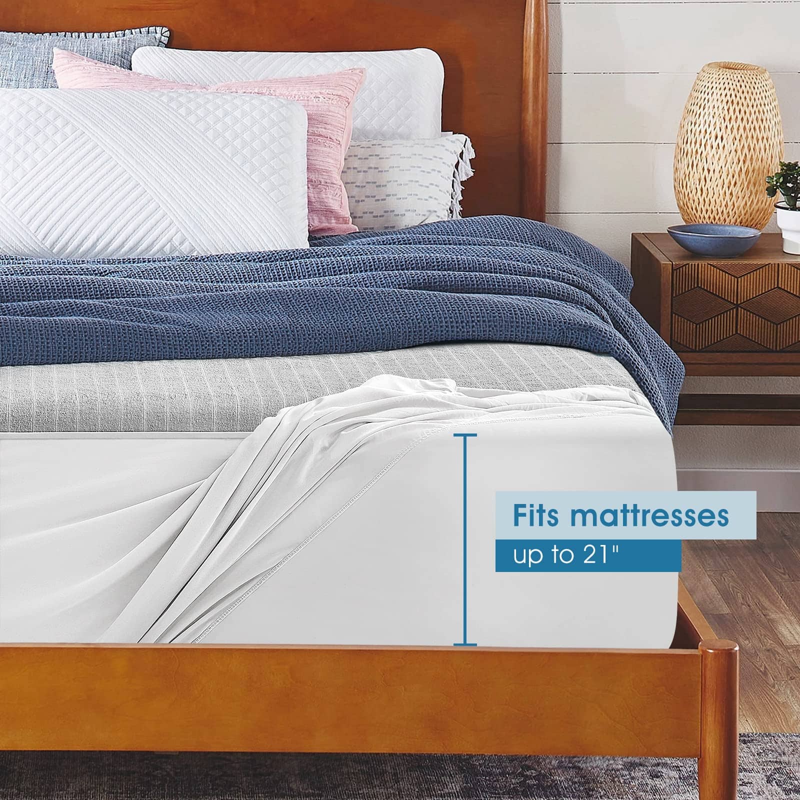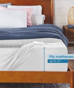 Con un ajuste de bolsillo profundo que se adapta perfectamente a colchones de 8 a 21 pulgadas de profundidad, el protector de colchón se mantiene en su lugar durante la noche sin deslizarse. Su diseño de borde a borde y lados profundos proporciona una protección completa para tu colchón king size.