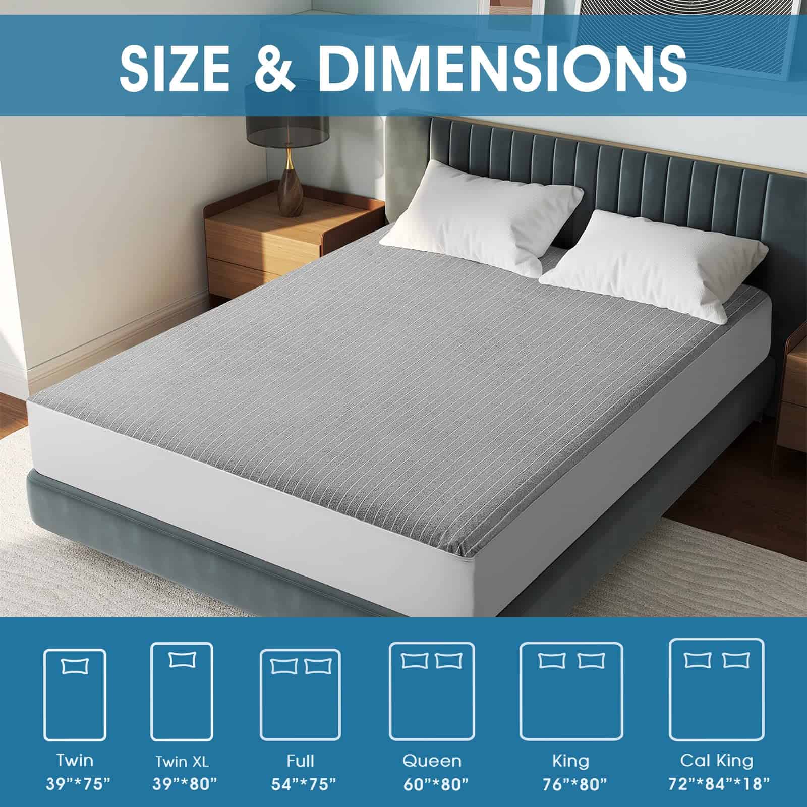 Cada protector de colchón tamaño king de TASTELIFE está diseñado para proporcionar una protección eficaz y duradera para tu colchón. Con medidas de 76 por 80 pulgadas, se adapta perfectamente a tu colchón king size. Certificado y probado para sustancias dañinas según los requisitos OEKO-TEX STANDARD 100, puedes estar tranquilo sabiendo que estás protegiendo tu colchón y a tu familia.