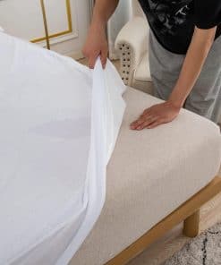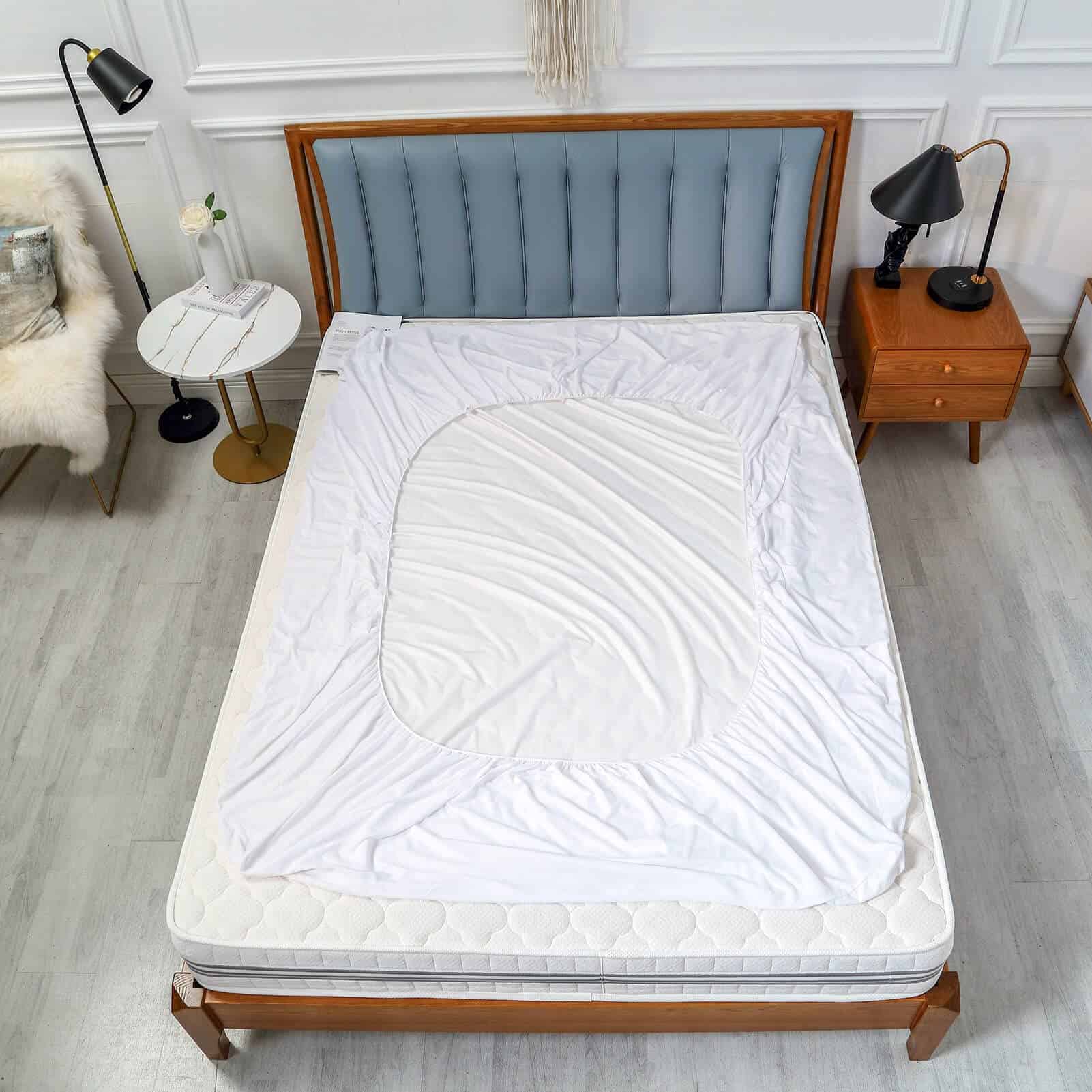1. Impermeable y transpirable – La parte posterior de la superficie superior de nuestro protector de colchón está recubierta con membrana TPU impermeable, que protege su colchón de la transpiración, líquidos y manchas mientras permite el paso del aire.