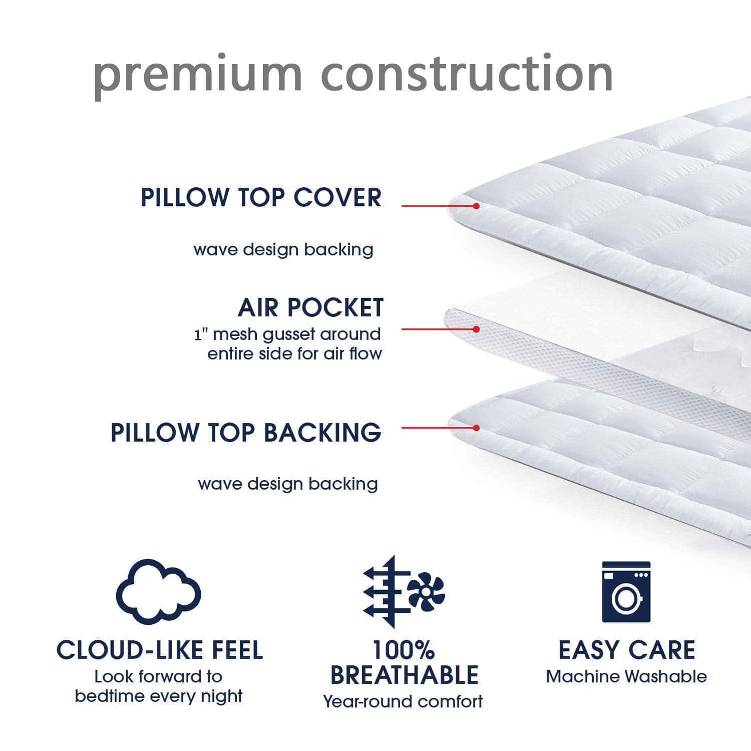 Duerme como un bebé con el cubrecolchón. Relájate en un cubrecolchón mullido que hace que sea fácil conciliar el sueño y permanecer dormido. Este cubrecolchón extra grueso cuenta con una mezcla de microfibra de primera calidad para agregar una superficie acogedora a tu colchón. Es súper suave y transpirable, permitiendo que el aire fluya libremente a través de la tela mientras mantiene su forma.