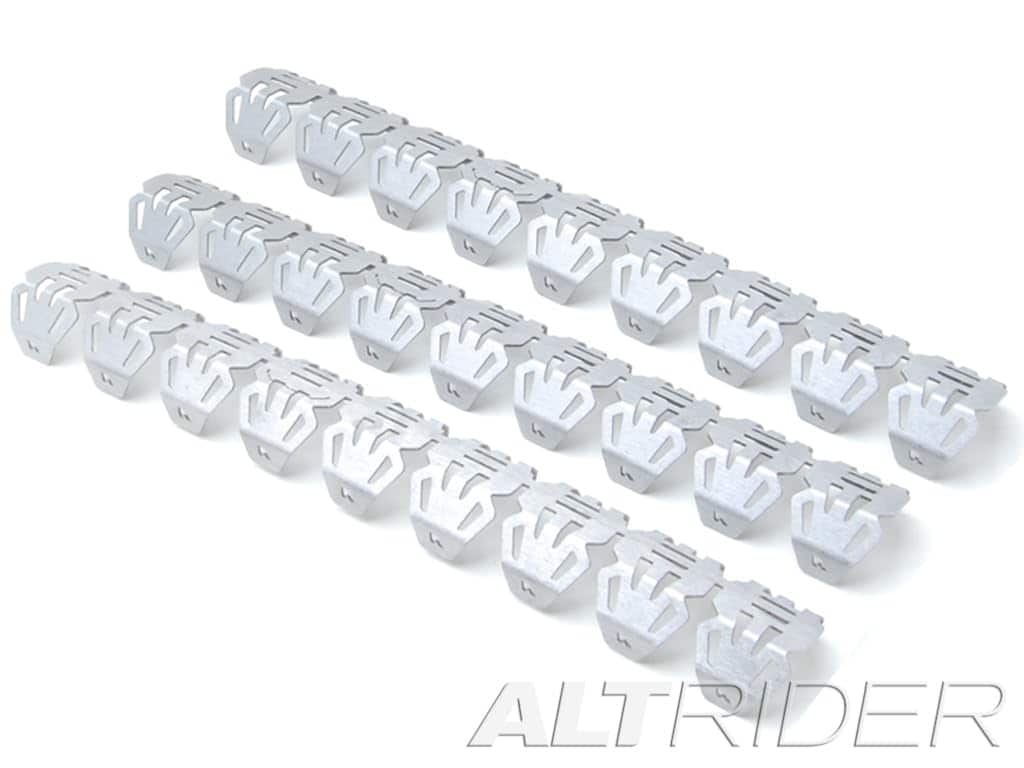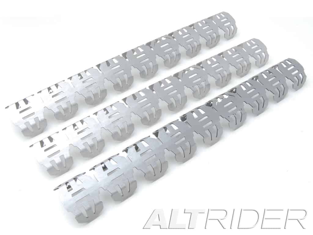 Proteja sus colectores de escape de abolladuras e impactos instalando el Protector de Colector de Escape AltRider para su moto. Fabricado en acero inoxidable de 1.5 mm de grosor, utiliza un diseño de seis aletas para envolver el tubo y ofrecer una cobertura superior contra rocas y escombros levantados. Esta pieza ofrece protección y un aspecto agresivo a su máquina. Para garantizar un ajuste perfecto, el Protector de Colector de Escape AltRider fue diseñado para adaptarse fácilmente a los contornos de cada tubo de escape antes de fijarlo con las abrazaderas de manguera de acero inoxidable incluidas. Hecho de acero inoxidable 304. Provisto con abrazaderas de acero inoxidable de alta calidad. 1.5 mm de grosor. Longitud de 37.5 cm (14.75 pulgadas). Se adapta a tubos de admisión/escape de 42-48 mm (1.6 – 1.9 pulgadas) de diámetro. Este protector de colector se ajustará prácticamente a cualquier moto de aventura, moto dual o moto de cross. Ordene el kit específico para su moto o simplemente ordene kits individuales de moto cross para cada colector o área de tubo de escape expuesto. Ya sea que conduzca en carretera o fuera de ella, asegúrese de proteger su moto con un Protector de Colector de Escape AltRider.