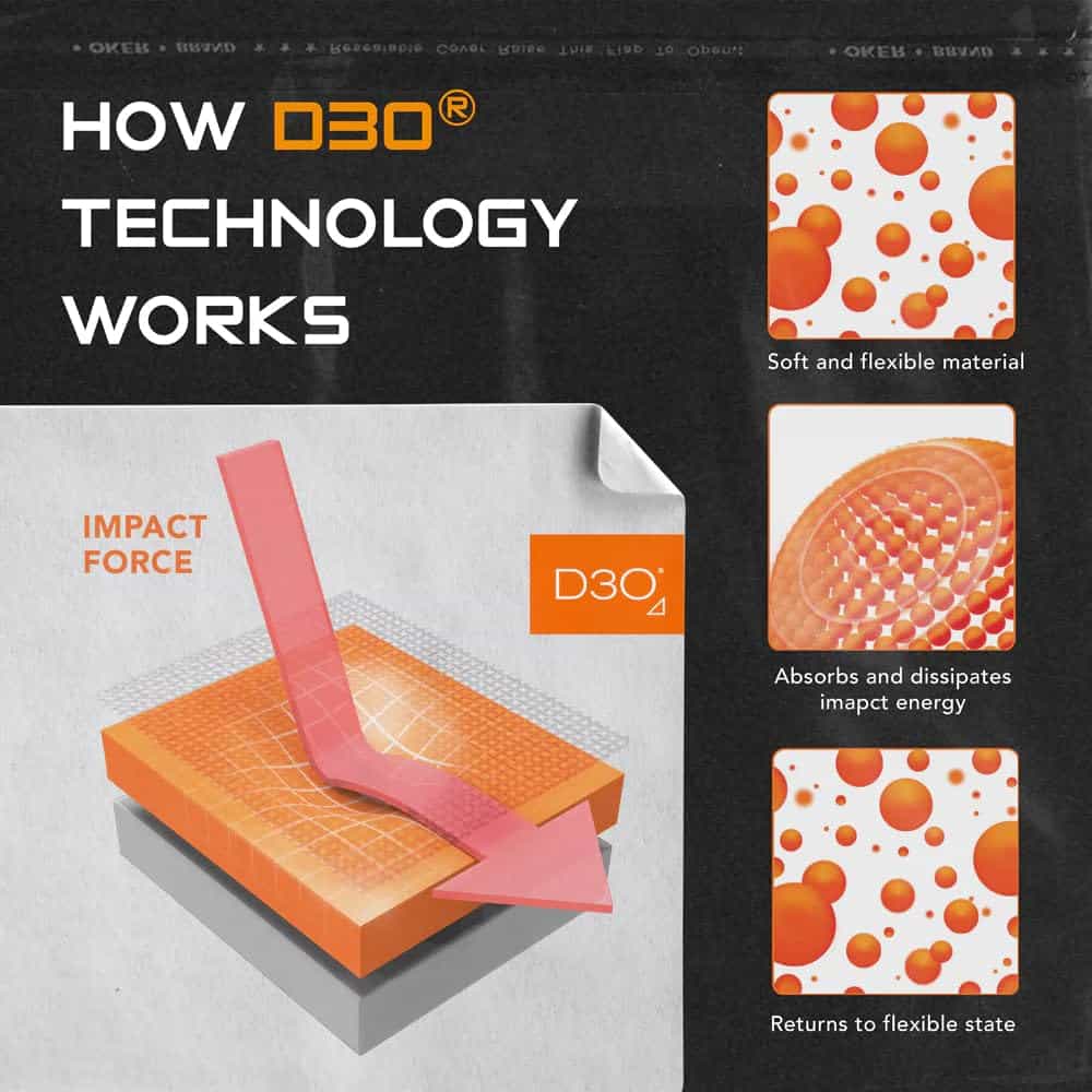 INTERCEPTOR Construcción ligera y transpirable de Nylon Spandex. Exclusive inserto protector de cuello de impacto D3O para una protección superior. Resistente a cortes y cortaduras. Cierre de velcro ajustable que permite una variación de tamaño de 2 (5 cm).