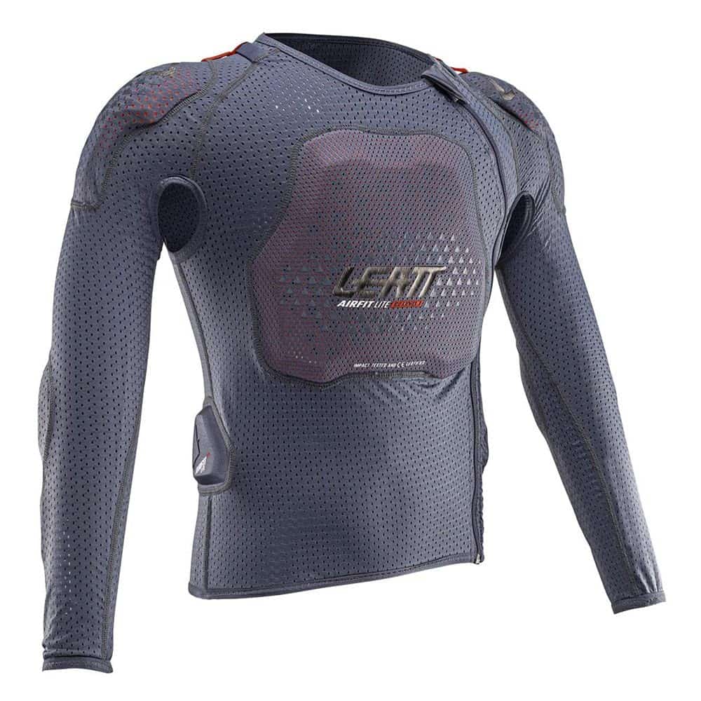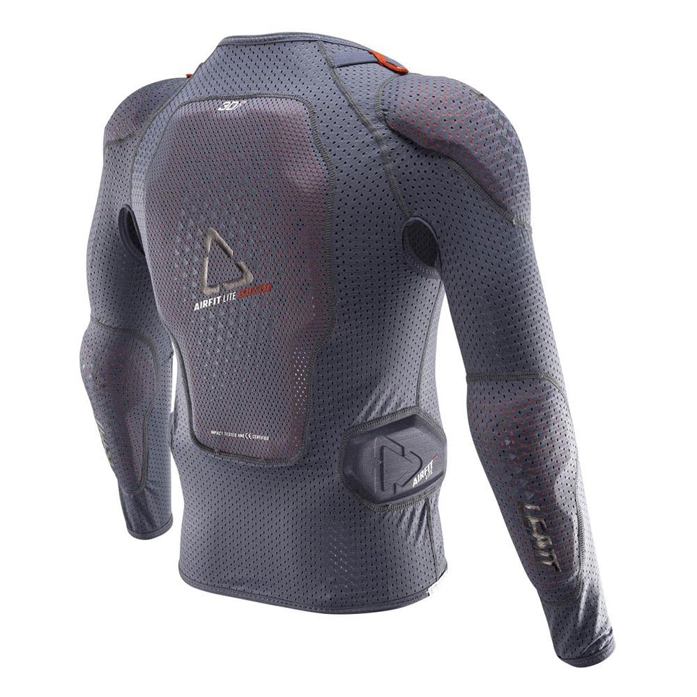 Total puntaje de protección Leatt de 18 puntos. Espuma de impacto suave ventilada 3DF AirFit. Certificado CE como protección contra impactos: Pecho EN1621-3 Nivel 1. Espalda EN1621-2 Nivel 1. Codo y Hombro EN1621-1 Nivel 1. Nueva malla adicional en áreas críticas para mejorar el flujo de aire. Nuevo diseño único de tamaño, 3D asegura un ajuste cómodo. Nuevo sistema de ajuste de cuello BraceOn más delgado. Diseño de calcetín de compresión con cremallera fácil de usar para una evaporación máxima. Protector de espalda de longitud completa. Flanqueador acolchado. Telas MoistureCool y AirMesh que absorben la humedad.