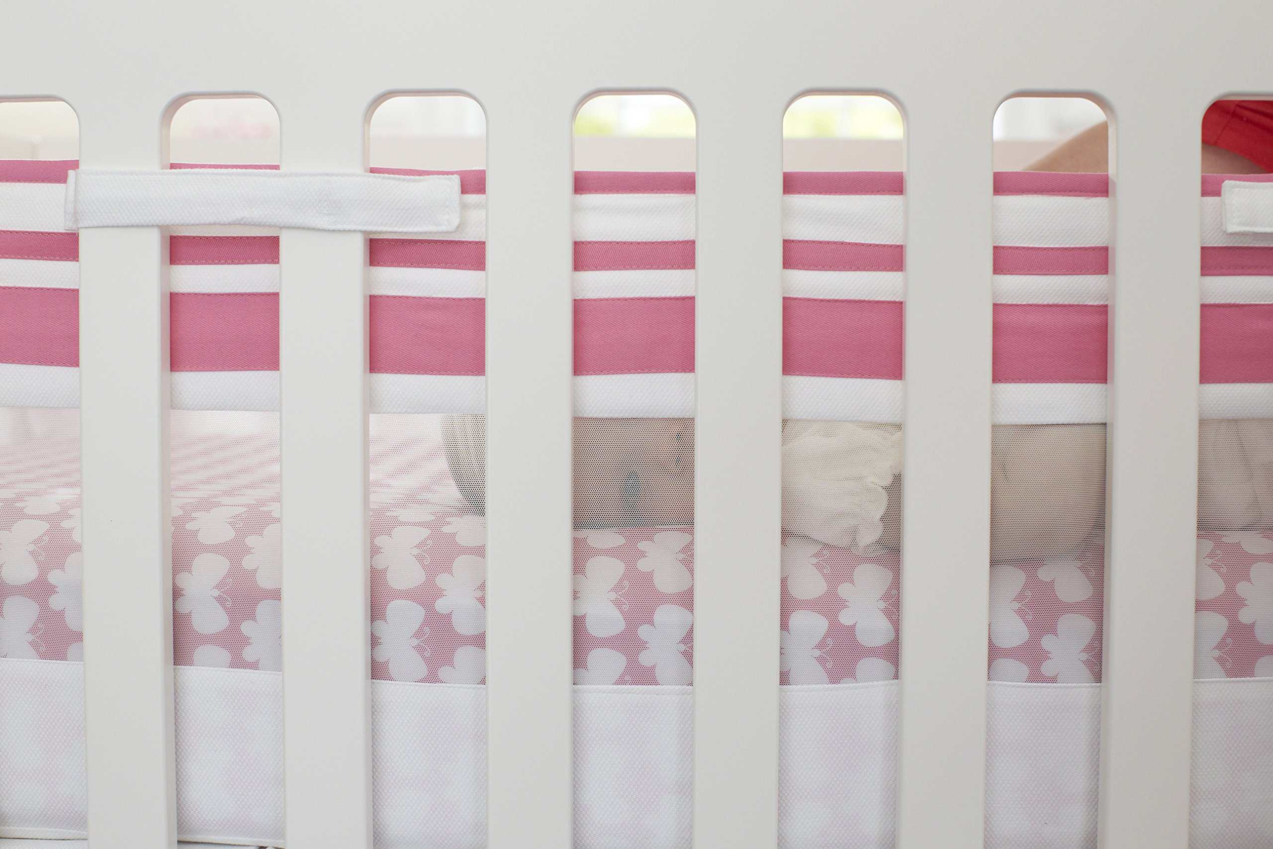 Protector de cuna Fresh Air de Just Born, Rosa/Blanco
