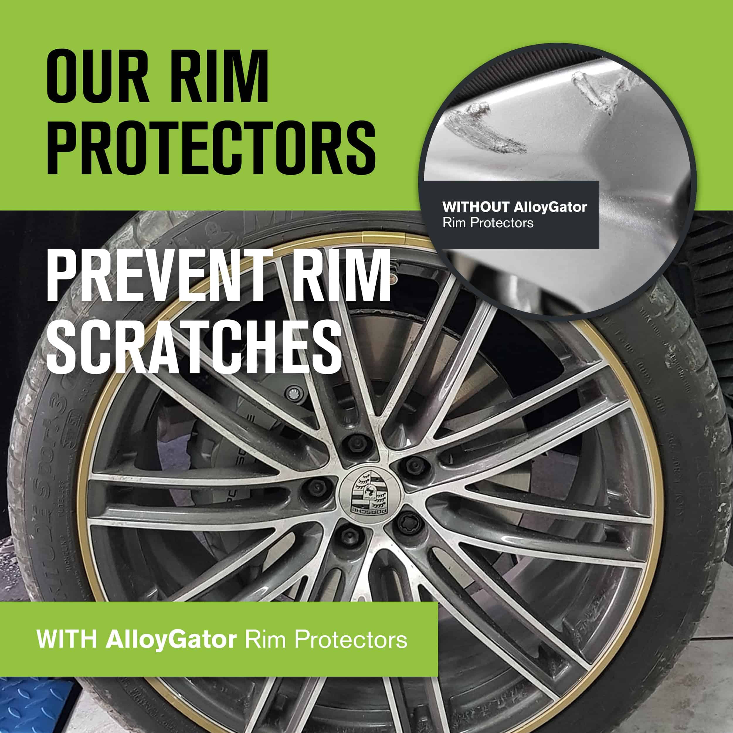 1. FORTALECE TUS LLANTAS – Protege tus ruedas de aleación de bordillos, baches e impactos en la carretera con los protectores de borde de ruedas de AlloyGator. Diseñados de manera única para encajar entre la rueda y el neumático sin problemas ni adhesivos, nuestros protectores de borde para llantas de coche ofrecen tanto una estética limpia como un mantenimiento sin esfuerzo.