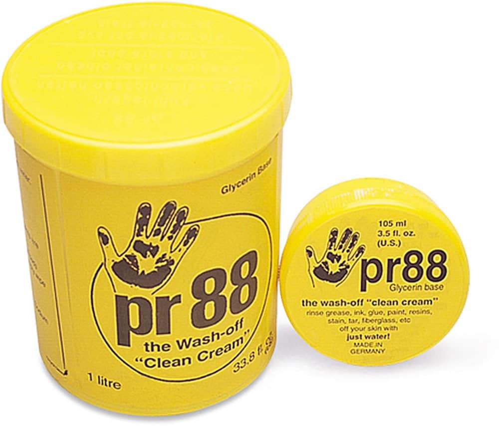 Otra gran idea. PR-88 es un compuesto húmedo, aprobado por la MSDS, que evita que el aceite y la suciedad penetren en la piel. Aplica PR-88 antes de empezar el trabajo -ni siquiera notarás que lo llevas puesto- luego simplemente lávate con agua y jabón cuando hayas terminado.
