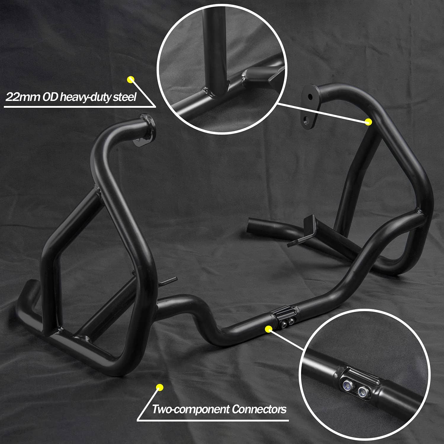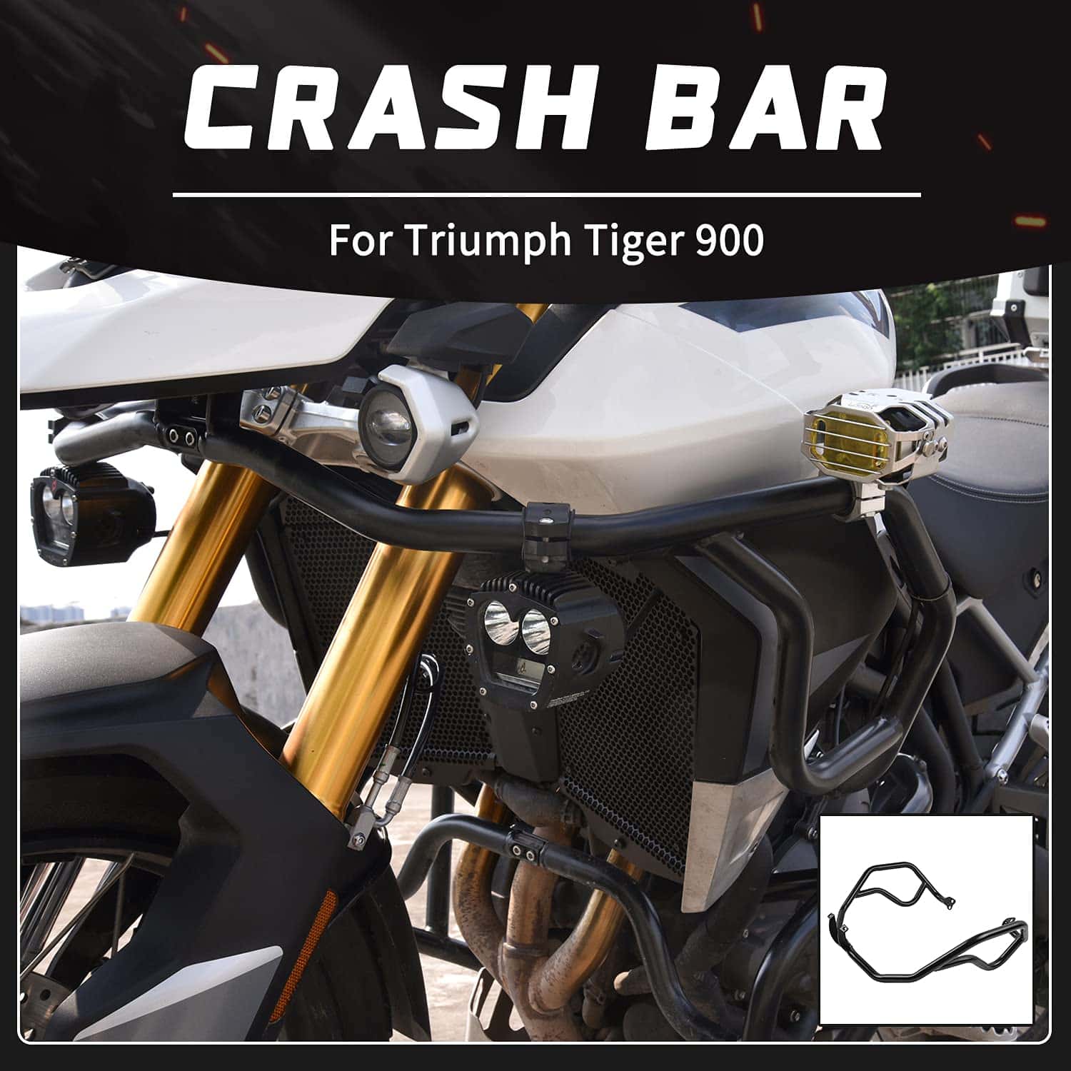 Protector de Motor de Barra de Choque de Autopista Superior Inferior Defensa Parachoques Jaula de Acrobacias Protectora de Marco para Triumph Tiger 900 Rally/GT/PRO 2020 2021 2022 2023 Piezas para Motocicleta Dual-Sport (Negro – Un Juego) es una excelente adición a tu motocicleta para protegerla de daños al caerse o al viajar en terrenos accidentados. Este producto de calidad está diseñado específicamente para adaptarse a los modelos de Tiger 900 del 2020 al 2023, incluidos Rally, Rally Pro, GT y GT Pro. Con una construcción robusta de tubos de acero al carbono de 22 mm de diámetro exterior y un recubrimiento en polvo negro, estas elegantes barras garantizan durabilidad y protección contra la corrosión. El paquete incluye un par de protectores de defensa de motor con todo el hardware de montaje necesario para una instalación sencilla. Asegura la integridad de tu motocicleta con este accesorio esencial que combina funcionalidad y estilo en un diseño de aventura adecuado para cualquier entusiasta de las motocicletas todoterreno. ¡Protege tu inversión con este protector de motor de alta calidad y disfruta de viajes libres de preocupaciones y con un aspecto elegante y seguro!