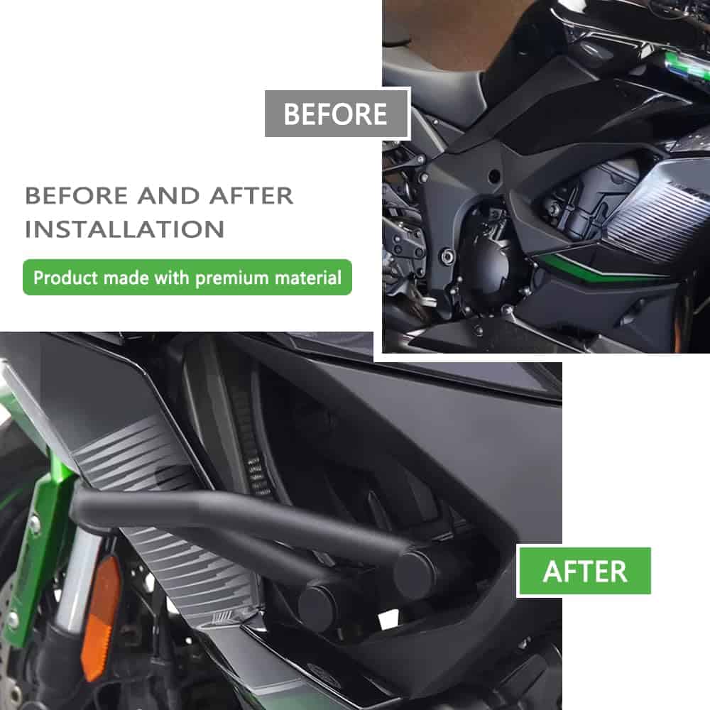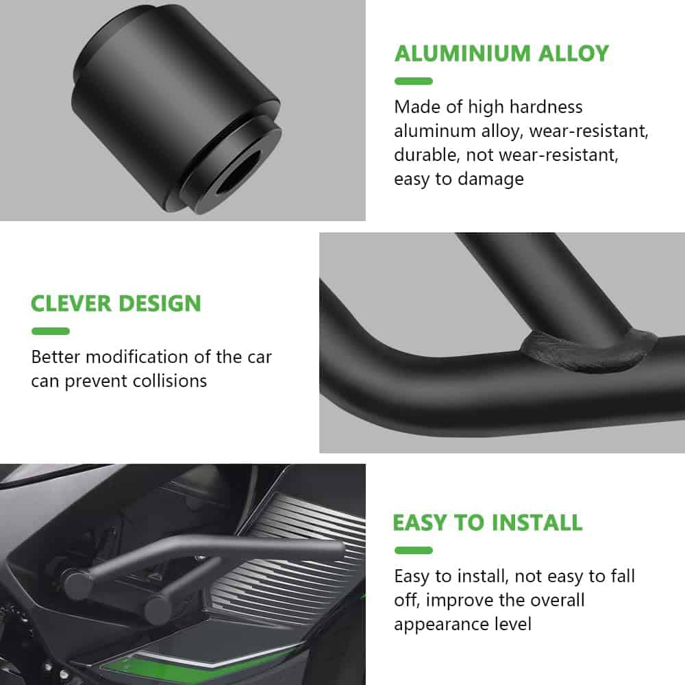 Protector de motor para Ninja 1000sx 2021 2022 2023. Este producto no es una parte genuina del fabricante. Por favor, verifique si se ajusta a su motor antes de realizar el pedido. Cuando la motocicleta cae, el parachoques será el primero en entrar en contacto con la superficie de la carretera, actuando como un amortiguador para proteger la motocicleta y reducir los daños en el cuerpo. Proteja su seguridad, cree un espacio seguro para el conductor y proteja las piernas cuando la motocicleta caiga. Una moto sin parachoques puede atrapar sus piernas cuando cae. Material resistente: fabricado con acero resistente, resistente a la corrosión y al óxido. Suficientemente resistente para proteger su motocicleta. Al caer su vehículo al suelo o al ser rayado por una piedra, instalar esta barra de protección puede ahorrarle costos de mantenimiento. Funciones adicionales: 1. Reduzca el daño al motor y a los paneles del cuerpo cuando la motocicleta vuelque. 2. Las barras de protección evitan el daño a la carrocería, incluido el depósito de combustible, por el cual el gas escaparía si se filtrara a través de agujeros perforados en la roca astillada. Servicio postventa: puede comprar con confianza. Para problemas de calidad y fabricación, proporcionaremos repuestos u otras soluciones. Si tiene alguna pregunta sobre el producto, no dude en contactarnos.