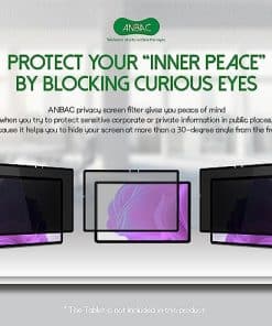 El protector de pantalla de privacidad removible ANBAC está diseñado para ofrecer tranquilidad en lugares públicos al proteger la pantalla de su dispositivo de la vista de otras personas. La tecnología avanzada de microlóbulos de la película permite una visualización clara de la pantalla desde el frente, evitando que el ángulo de visión vaya más allá de 30 grados a la izquierda y a la derecha desde su posición central. Esto es ideal para proteger información delicada o trabajar en entornos públicos. Además, el protector reduce la exposición a la luz azul y otros rayos dañinos, ofreciendo una capa adicional de protección para sus ojos. El recubrimiento antirreflejos especializado reconforta los ojos incluso después de largas horas de uso, y previene huellas dactilares y arañazos en la pantalla. La película del protector es magnética, lo que facilita su instalación y uso. Además, cuenta con una capa delgada y reutilizable a base de silicona que evita el deslizamiento de protectores magnéticos y optimiza la sensibilidad táctil. El protector también es compatible con el uso de S Pen, ofreciendo una sensación de escritura similar al papel en su superficie mate. Cada paquete incluye un protector premium fabricado con los mejores materiales coreanos, una funda de almacenamiento para mantener el protector limpio cuando no está en uso, y un paño de limpieza de microfibra de alta calidad. Con una amplia compatibilidad con dispositivos Samsung Galaxy Tab, este protector es una excelente inversión para mantener su pantalla segura y su vista protegida.