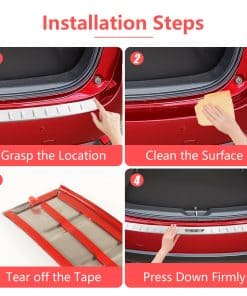 Limpie el umbral de la puerta del maletero y asegúrese de que la superficie esté limpia y seca. Despegue la película adhesiva de respaldo, agarre el lugar donde debe pegarse, pegue la tira de protección plana en su superficie.