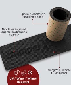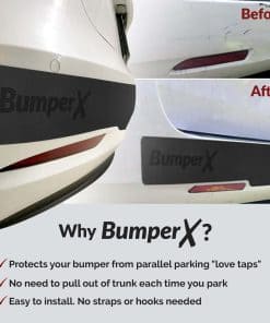 No más visitas costosas al taller de chapa y pintura para arreglar y repintar tu parachoques. Nuestro protector de parachoques BumperX se adherirá sobre arañazos profundos, agujeros de perforación, pintura descascarada y casi cualquier daño pequeño en tu parachoques. No se verá tan bonito como un repintado, pero aún así puedes mantener ese aspecto elegante. ¡Además, tu cartera te lo agradecerá! Variantes Versátiles para Elegir La tira de coche BumperX está diseñada para adaptarse a la mayoría de los vehículos, directamente de la caja. Un poco más gruesa que un cuarto, es fácil de conformar, cortar y personalizar para el parachoques plano de tu coche o como protector de parachoques delantero. Ajuste Universal, 5 pulgadas de largo x 62 pulgadas de ancho Ajuste Universal, 6 pulgadas de largo x 62 pulgadas de ancho Ajuste para Tesla 3 Model ¡Pega y Olvídate! Nuestro protector completo de parachoques trasero viene con un adhesivo fuerte diseñado para durar años. Es fácil de pelar y pegar en tu parachoques. No tienes que preocuparte de que accesorios exteriores para coche como este se caigan mientras conduces. Instalación Fácil Paso 1: Prepara el Parachoques. Lava el parachoques. Después de que se seque, pasa alcohol y frota el parachoques. Paso 2: Centra el BumperX y adhiérelo al parachoques con cinta de pintor. Paso 3: Anclaje. Una vez que el BumperX esté centrado, pela una de las esquinas. Fija esa esquina al parachoques con el respaldo pegajoso. Paso 4: Pégalos. Despega lentamente el respaldo de papel y presiona unas pulgadas a la vez. Una vez pegado el BumperX, presiona con fuerza en cada pulgada prestando especial atención a todas las esquinas. Acerca de BumperX BumperX es una pequeña empresa con sede en el Área de la Bahía que comenzó con la compra de un Prius 2005 con un parachoques deteriorado. Con estimados de repintado de alrededor de $1,000, optamos por encontrar algo para cubrir el parachoques. Nuestra investigación sobre goma y adhesión se convirtió en la clave del nacimiento de BumperX. Preserva el parachoques de tu coche con BumperX.