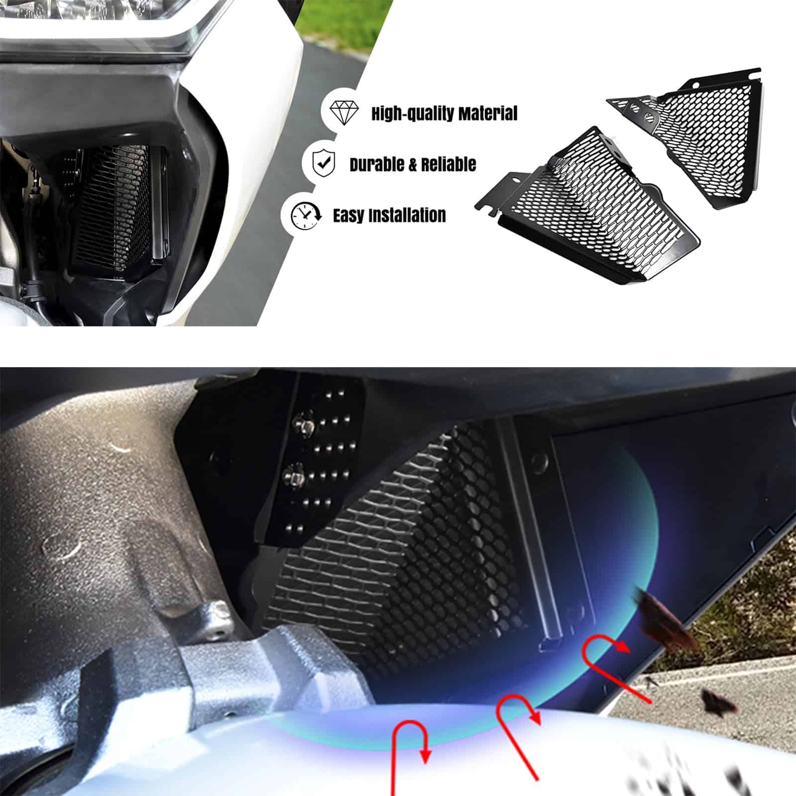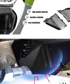 Proteja el radiador y el disipador de calor de su Goldwing GL1800 F6B con este duradero y elegante Protector de Red de Rejilla de Radiador Panical. Fabricado en acero inoxidable SUS304 de alta calidad, esta cubierta protectora proporciona una excelente defensa contra escombros de la carretera, insectos y otros peligros potenciales. Su elegante acabado negro complementa el diseño de su moto mientras que el patrón de malla permite un flujo de aire óptimo para una refrigeración eficiente. Fácil de instalar, este protector de radiador ofrece una protección superior sin comprometer el rendimiento. Actualice su paseo con este accesorio esencial y disfrute de la tranquilidad en cada viaje. Disponible para modelos del 2018 al 2025.