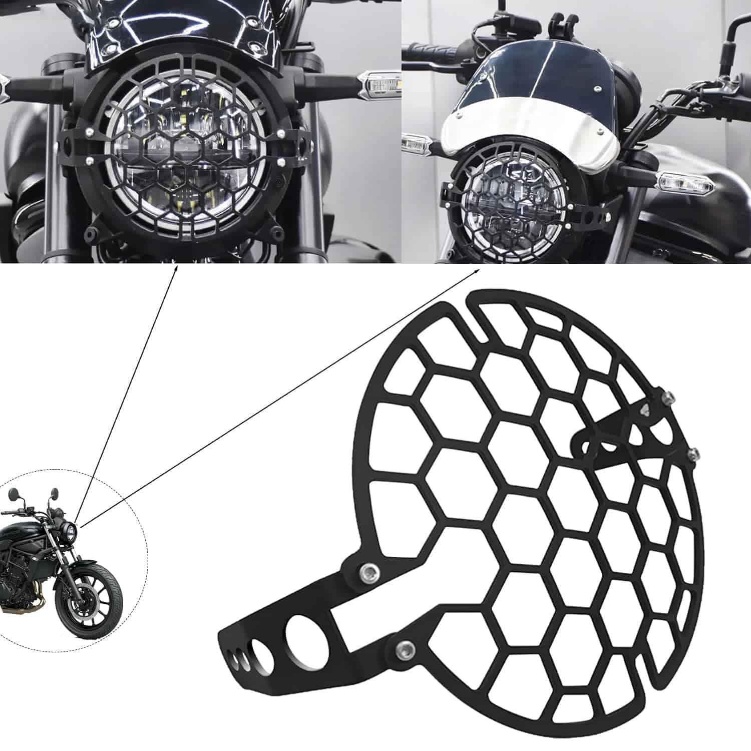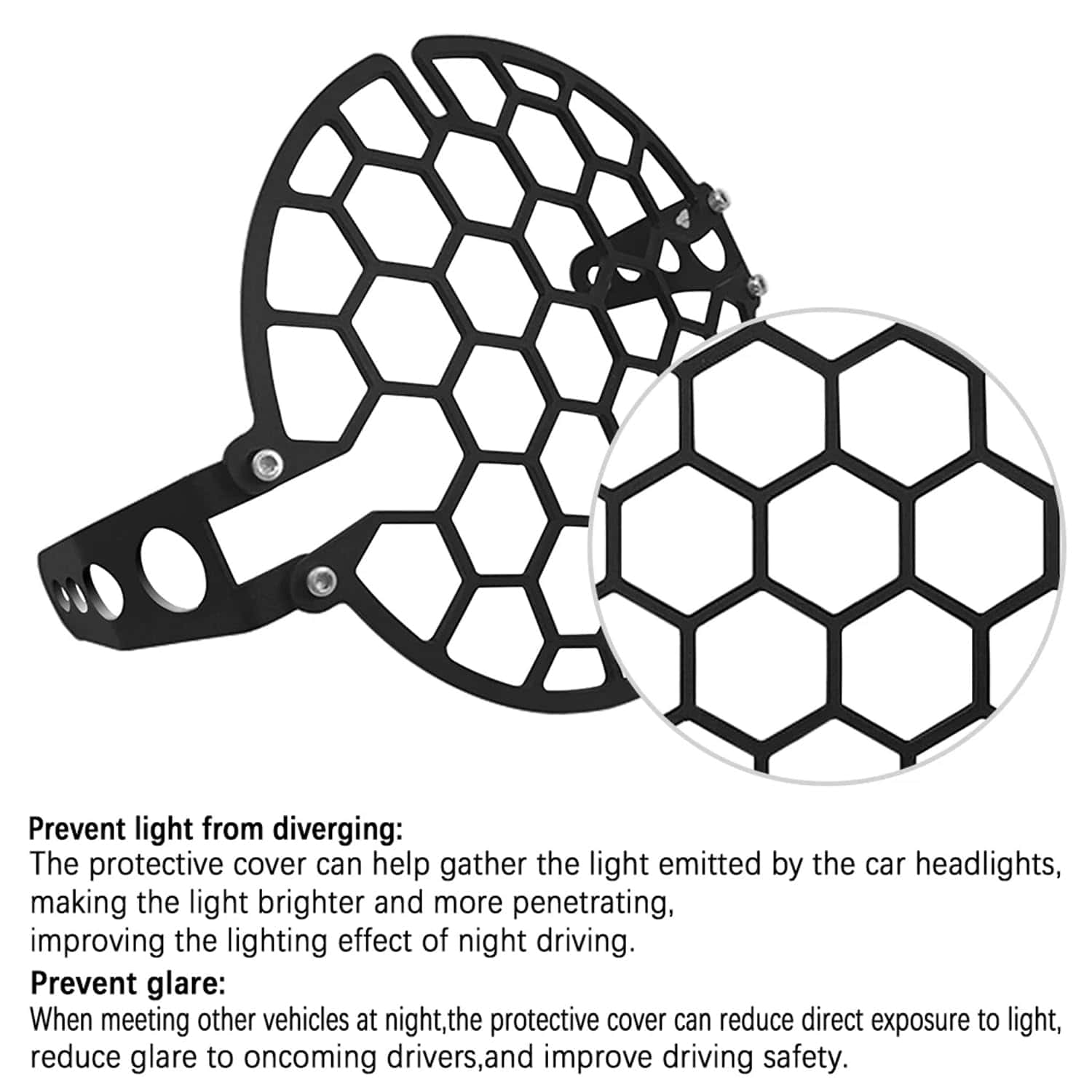 Presentación del producto: Hecho de resistente aleación de aluminio, tiene excelente resistencia al impacto y resistencia al desgaste, brindando protección completa para el faro de su motocicleta. Ya sea en un camino de montaña accidentado o en una concurrida carretera de la ciudad, puede proteger el faro de colisiones y rayones.