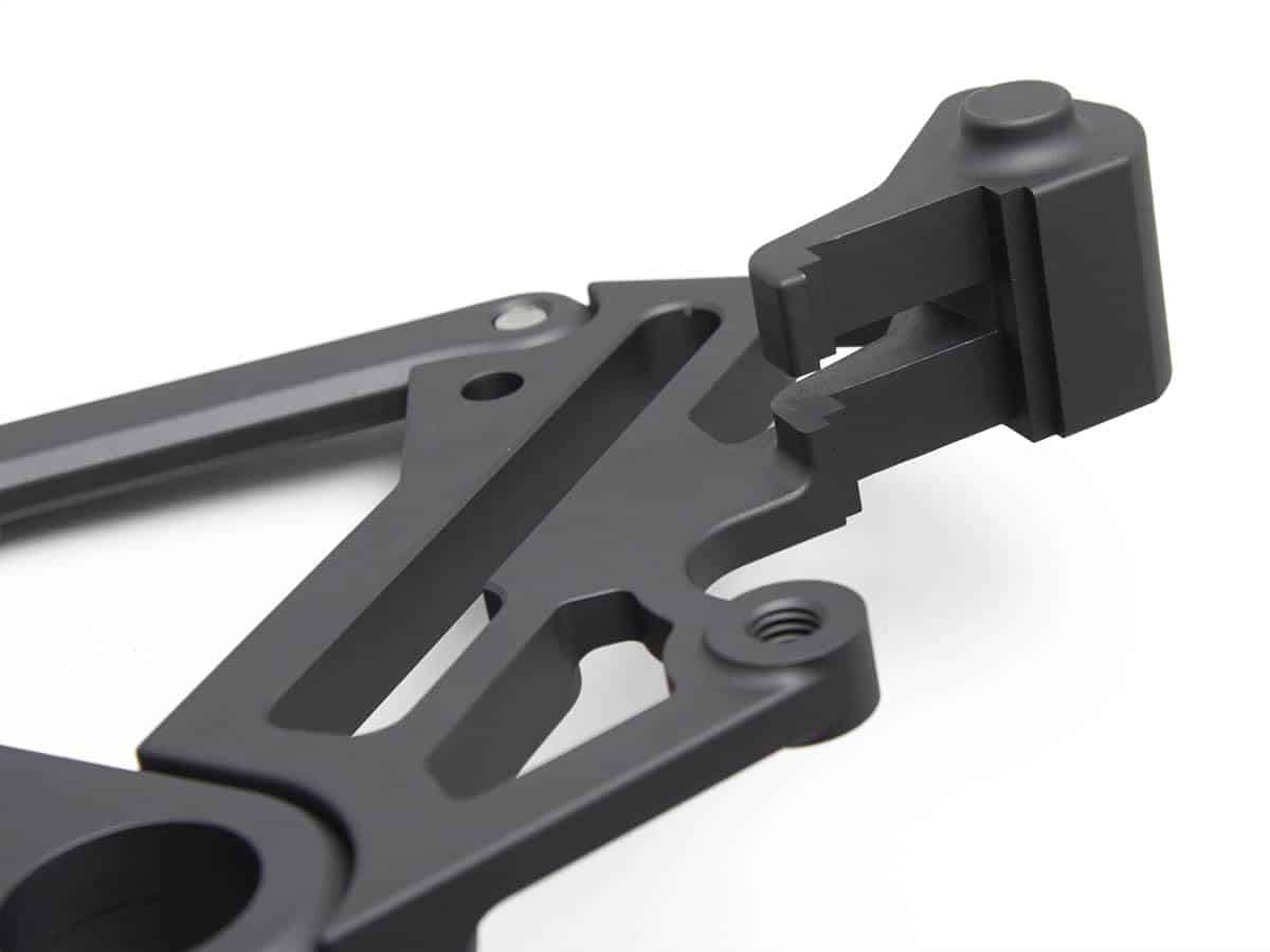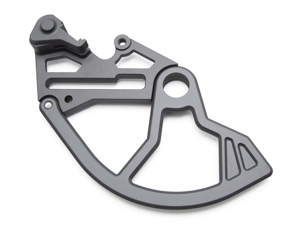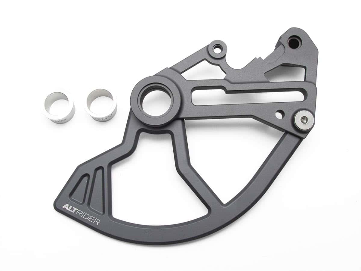 El protector trasero también se une al robusto eje de 20 mm, 22 mm o 25 mm y reemplaza el soporte de freno trasero con un soporte personalizado e inteligentemente diseñado para maximizar la resistencia, al tiempo que mantiene el peso bajo. El diseño de AltRider no utiliza el soporte OEM, ya que simplemente no está diseñado para resistir un impacto.