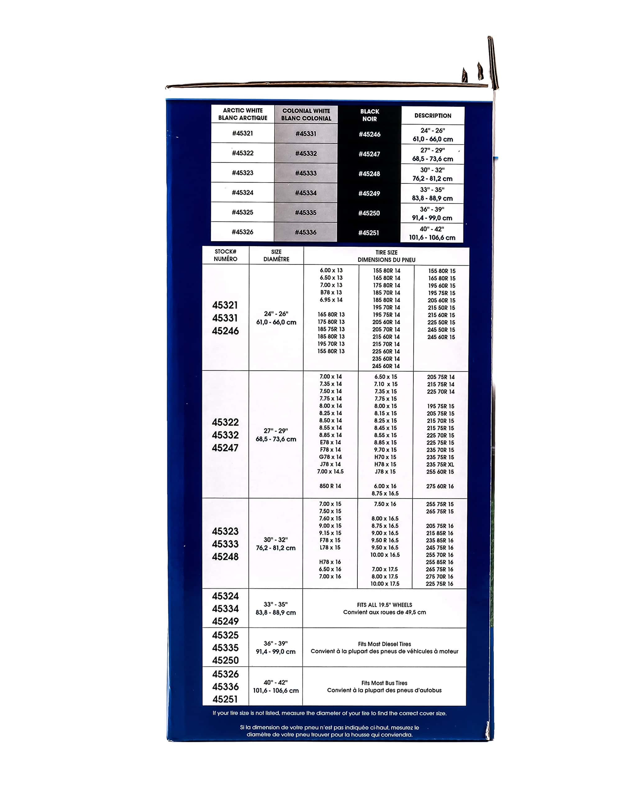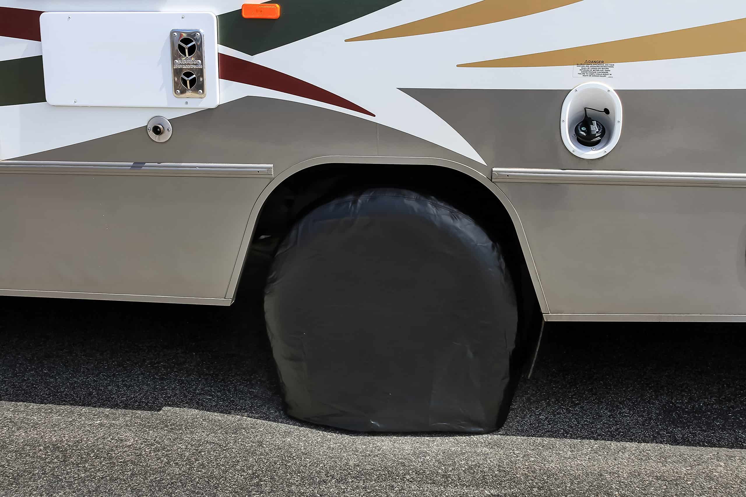 Los Protectores de Rueda y Llanta de Vinilo Negro de 27 a 29 Pulgadas de RV de Camco protegen tus llantas y ruedas del sol, la suciedad, la corrosión y todo tipo de clima mientras tu vehículo está estacionado.